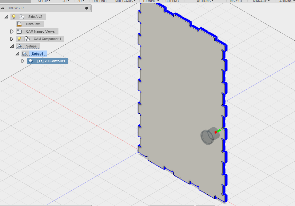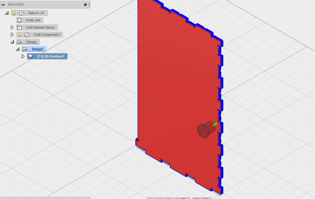 The first step was to align the axis at the right point of the design. Just moved the axis and rotated it so the x-axis can face the upperside to create a positive cartesian plane at that point.Where you put your axis matters because that determines how th emachine will cnc your work.