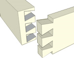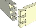 A dovetail joint or simply dovetail is a joinery technique most commonly used in woodworking joinery (carpentry) including furniture, cabinets, log buildings and traditional timber framing. Noted for its resistance to being pulled apart (tensile strength), the dovetail joint is commonly used to join the sides of a drawer to the front. A series of 'pins' cut to extend from the end of one board interlock with a series of 'tails' cut into the end of another board. The pins and tails have a trapezoidal shape. Once glued, a wooden dovetail joint requires no mechanical fastener.Reference:wikipedia