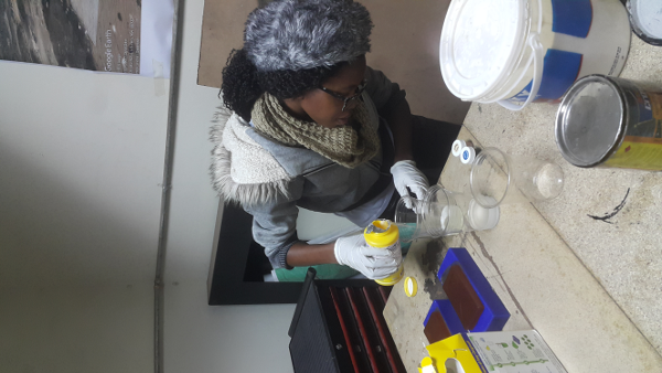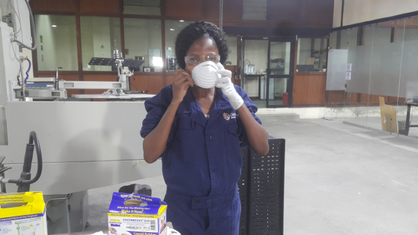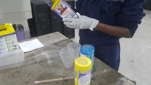 For safety meaasures I wore a lab coat and a mask, since I will be mixing the two ingredients I wore gloves. Before mixing I made sure I had everything I needed set up on the table.