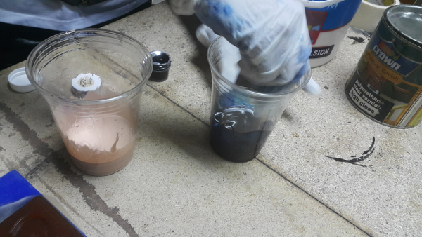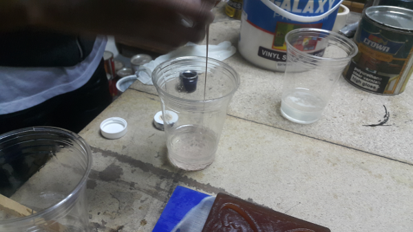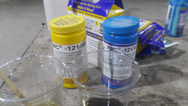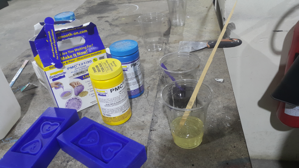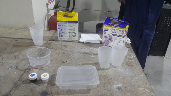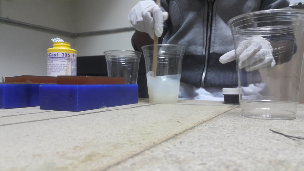 For this practical I took two cups to measure the two parts of the molding liquids and a mixing container. I set up in one of the tables in our labs as shown.