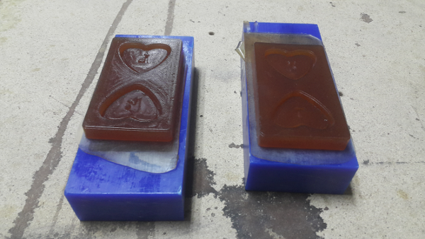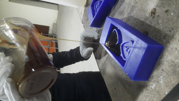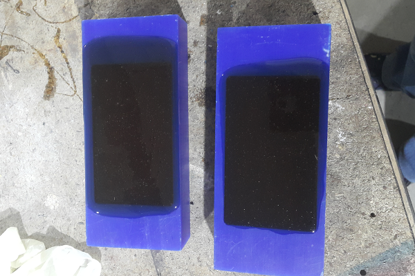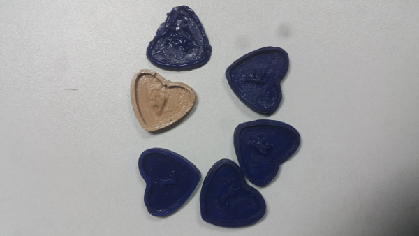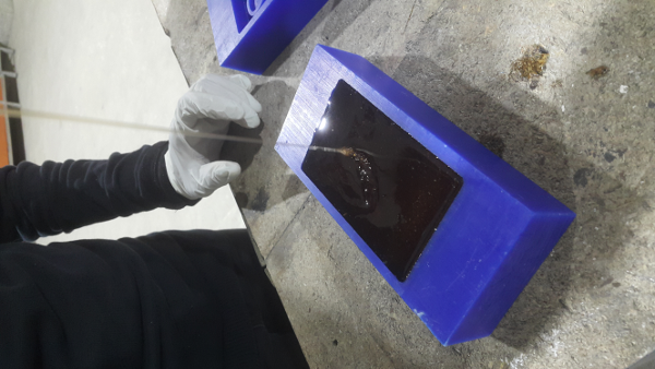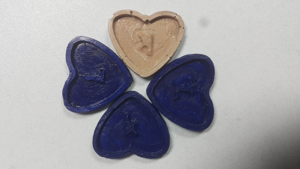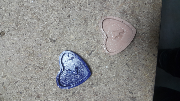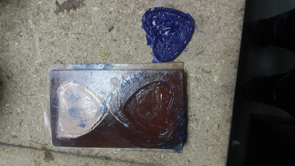 The first mold I casted without a release agent hence when I tried removing the pink cast it could not detach from the mold. The blue cast I poured it a little too let hence it was a bit thick thus the end result was a non-uniform cast as shown.