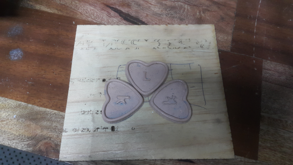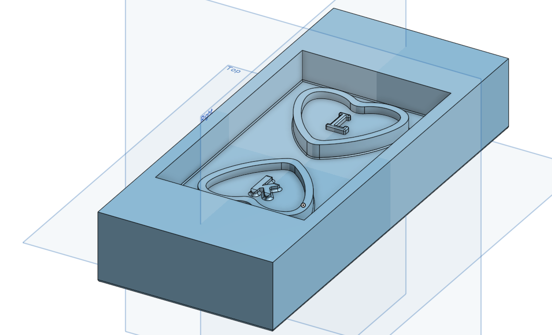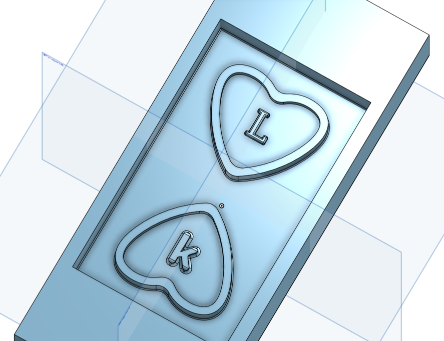Inside the heart shape I made a sketch and extruded it a few millimeteres to make the first letters of my names.I did the same for the other side.