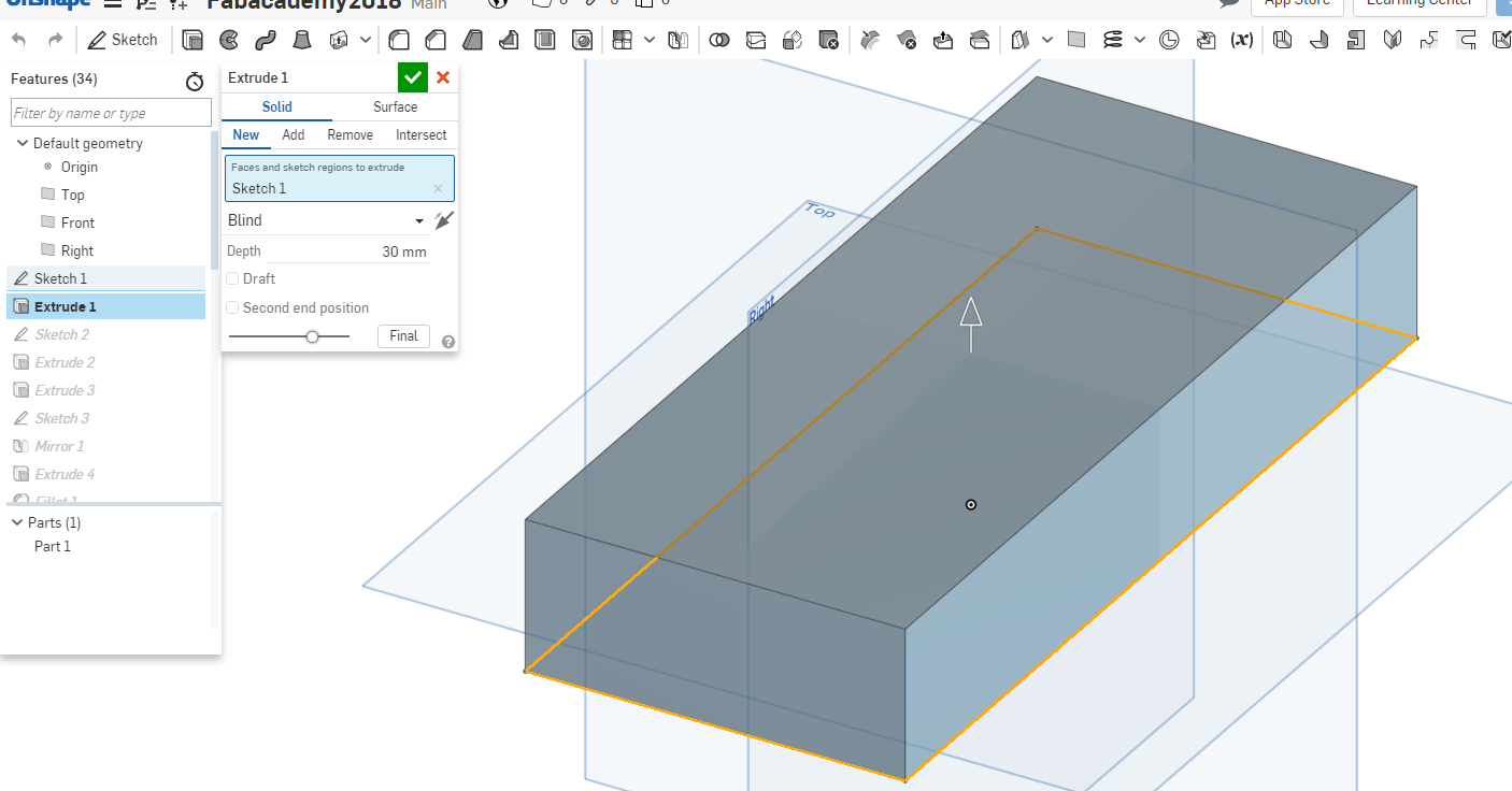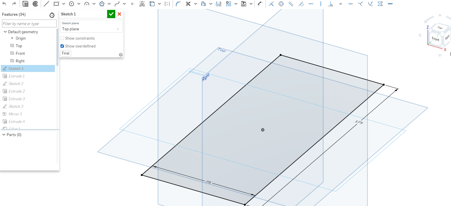 Used onshape to do the design. Since am using blocks of machinable wax as shown above. Starteed with the shape of the block wich is rectangle then extruded it.
