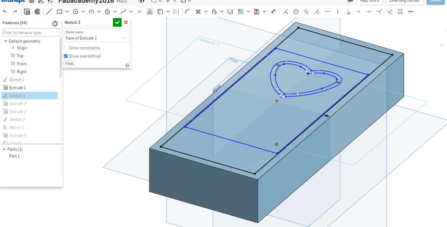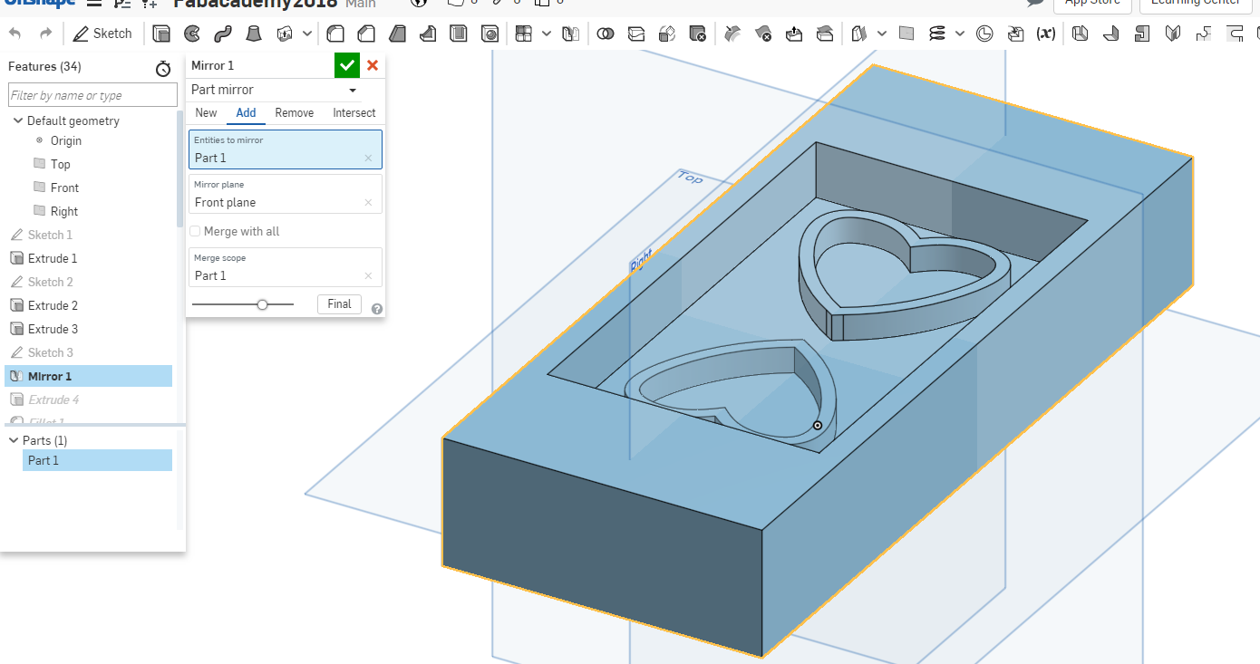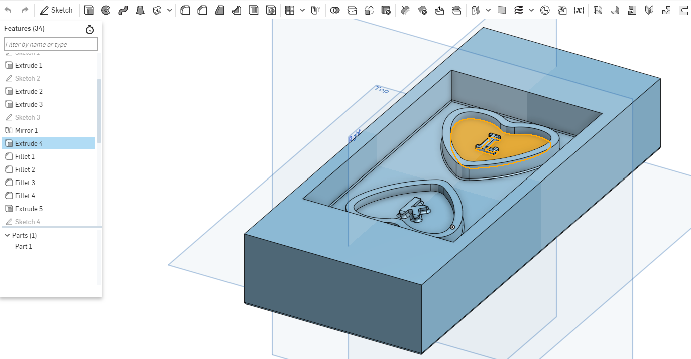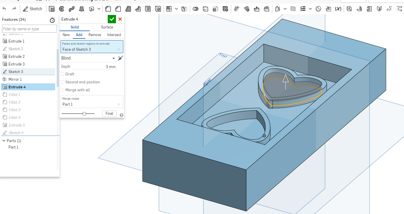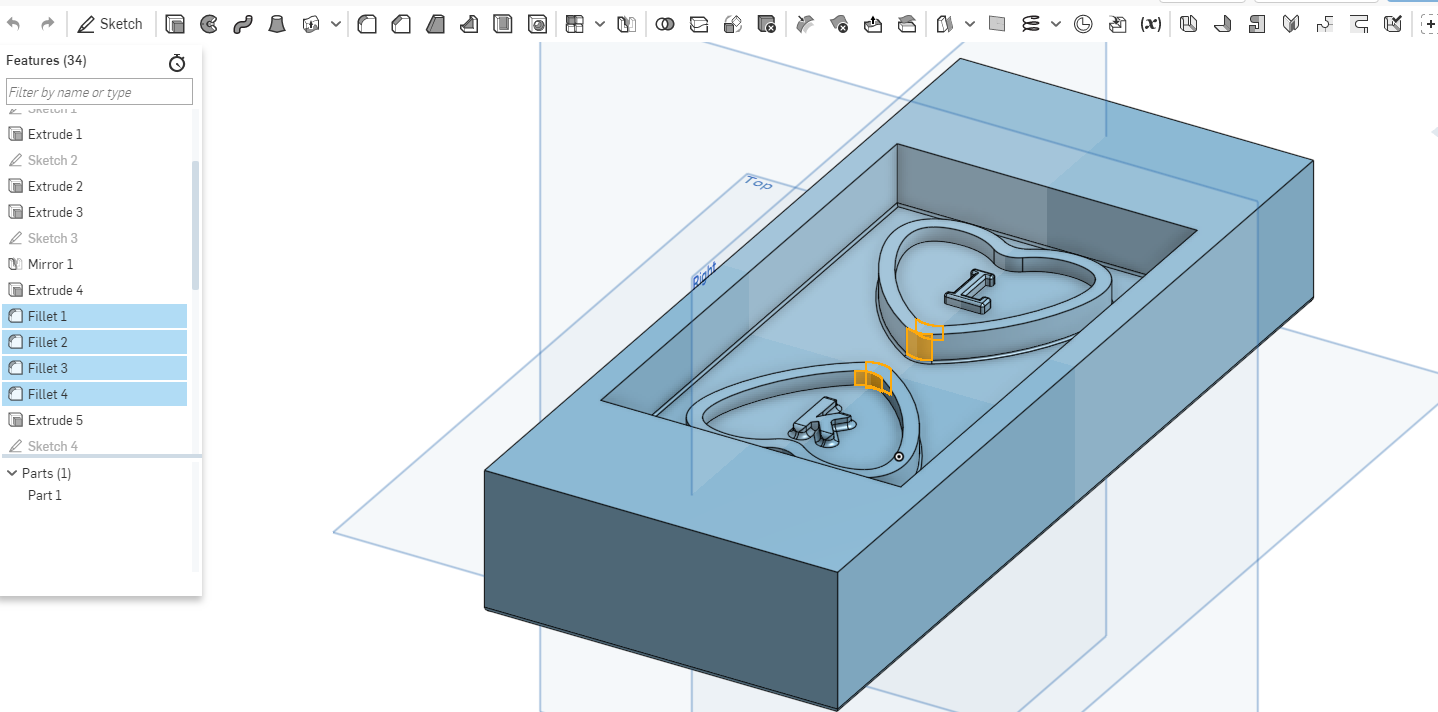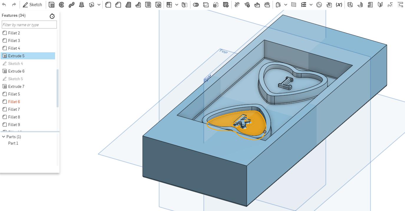 Then used the fillet tool to make the corners of the heart shape more smooth.