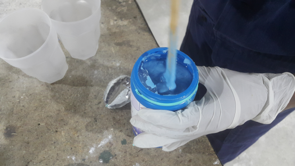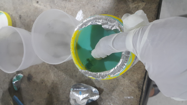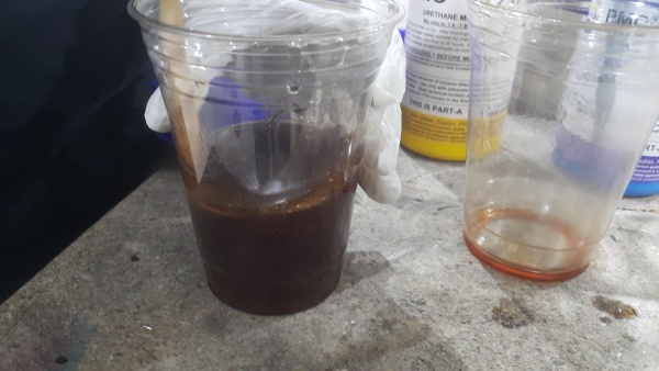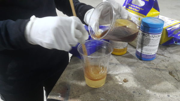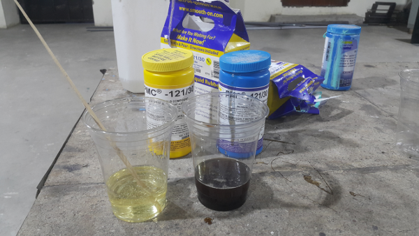 For casting I used two cups for the separate parts of liquid. This also required a equal measure of each part which I measured using the cups, after measuing I mixed them in one cup then divided in eaqual portions.