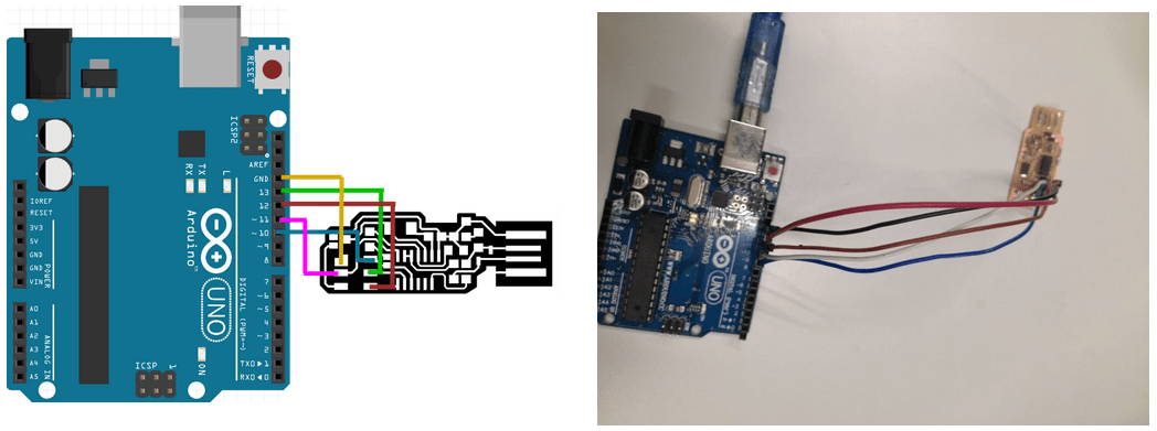 After that, I connected my board to the Arduino I programmed as seen in the below image.