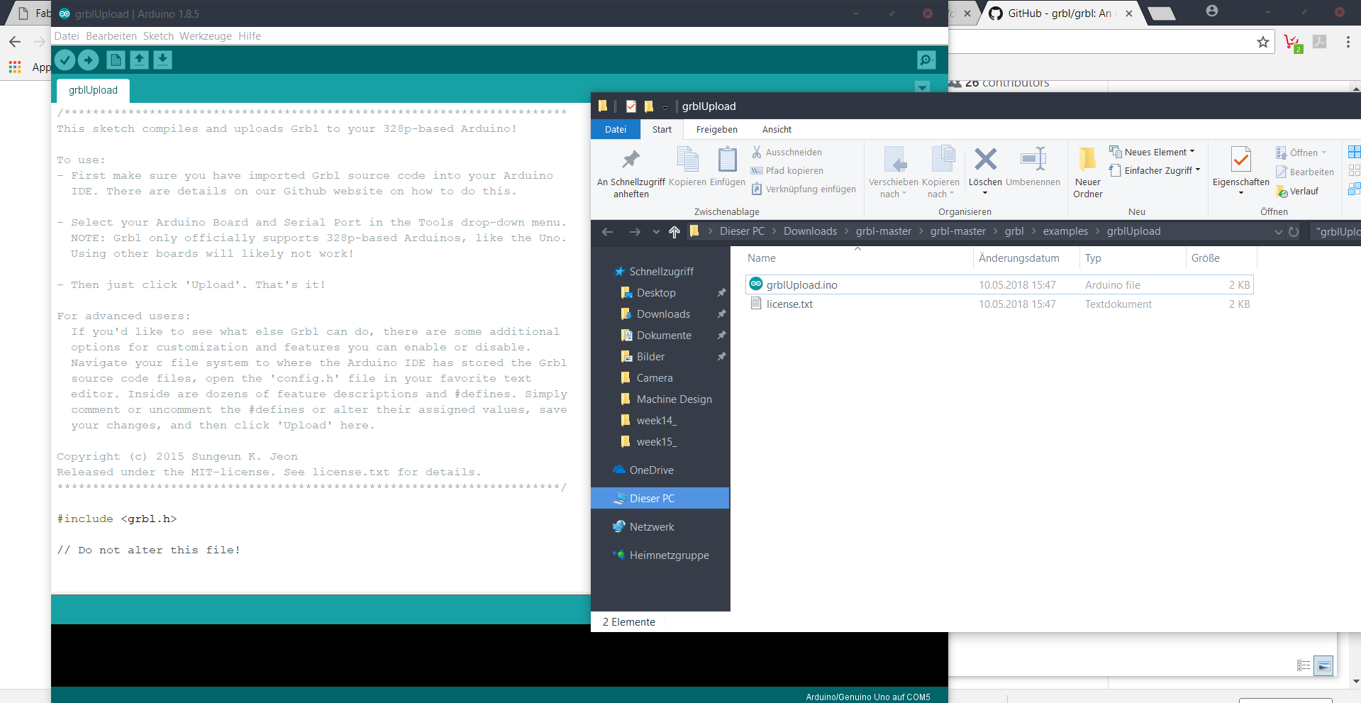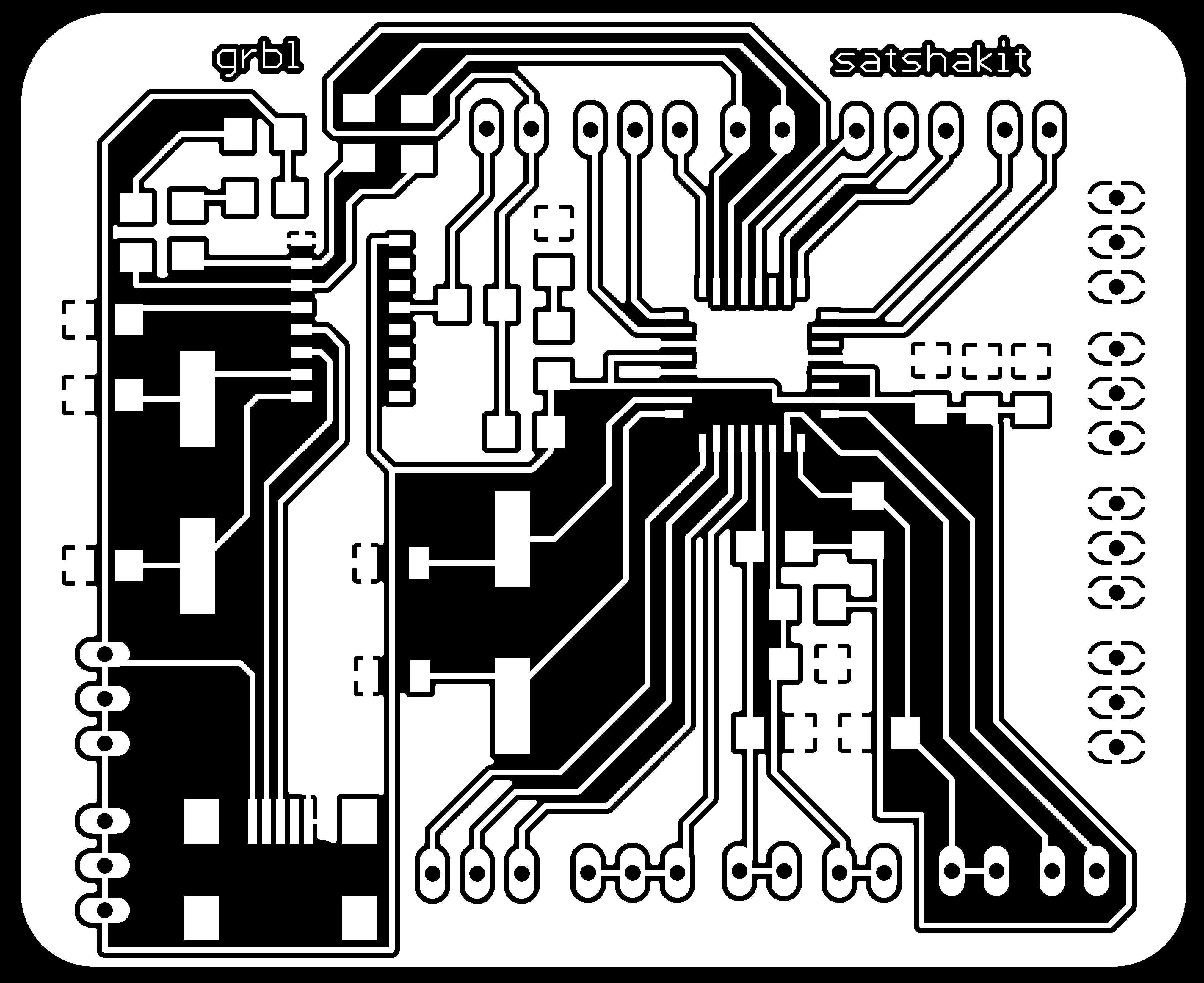 - document the group project and your individual contributionSatshakit-GRBLWell for this week I have decided to replicate a satshakit-GRBL in order to control the axies of the Machine, that we have made in the previous week. The picture below is the innercut if the Satshakit-GRBLAn hier ist the outer part of the Satshakit-GRBL, you can download it directly from here and use for you own purposes.Okay, here is how the boord looks like, after the soldering. I have extra choosen these kind of pinheaders, so that I can place the board on a strategical place.GRBLOkay, now we have to upload a GRBL to our board, therefore we need just to google for "GRBL" or you can use the linke, that you can see in the searchbar. After we have downloaded the GRBL, we have to import it to the Arduino. After this unzip it open it, go to examples and open "grblUpload.ino" and upload it to the satshakit. Here is the datasheet of it.Now connect the satshakit to the stepper driver a4982Okay now we have to calculate the stepps per mm for our motors. We have used Nema 17 Motors, you can find a datasheet below.