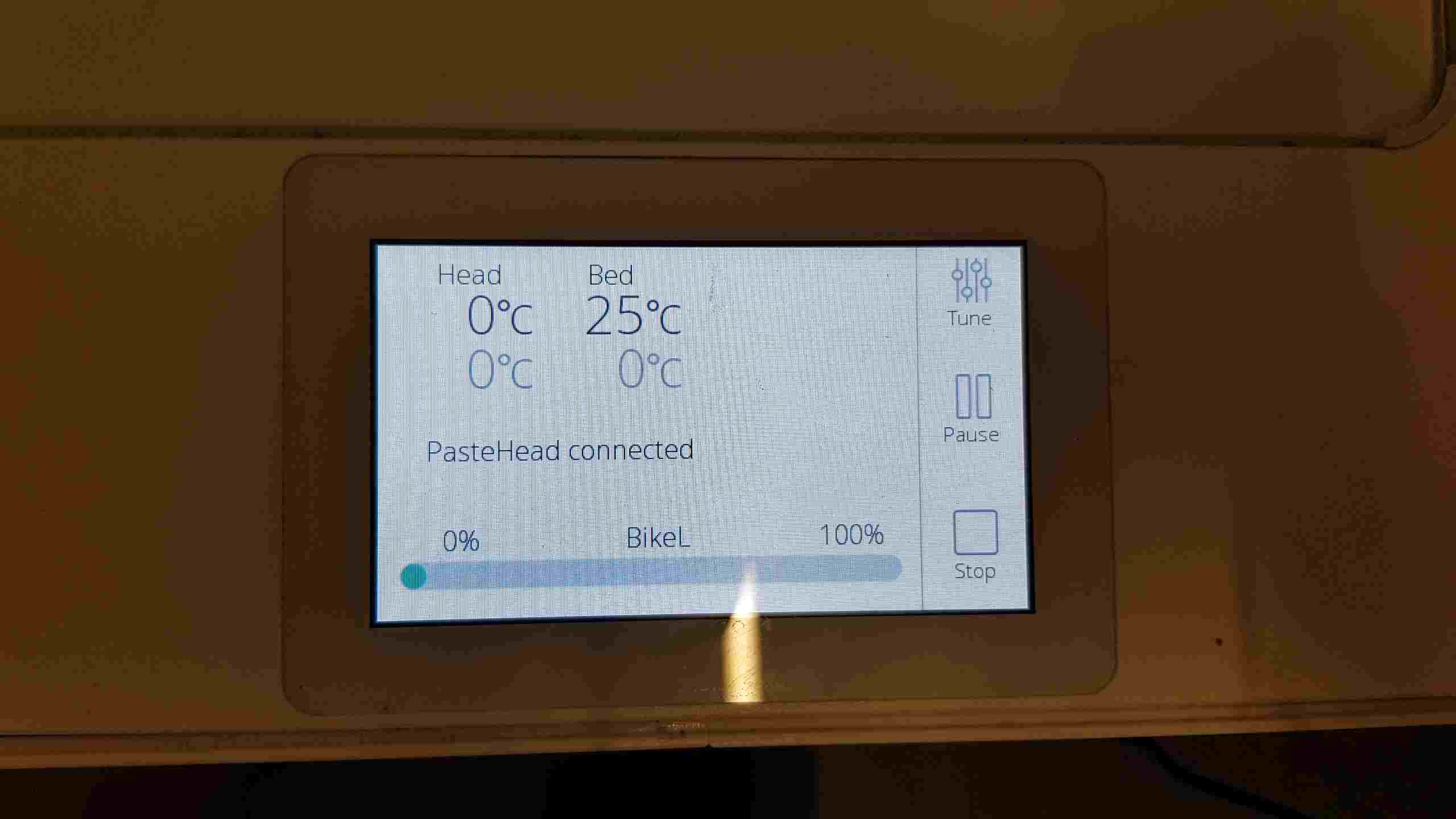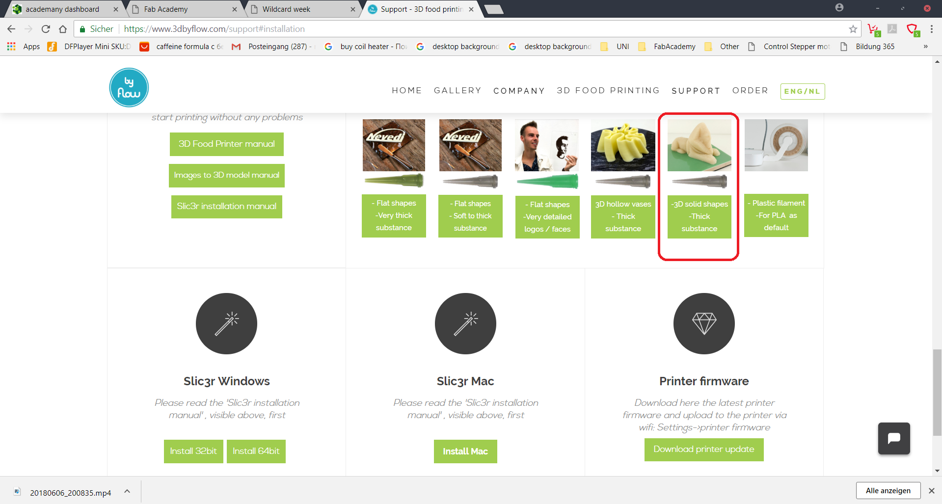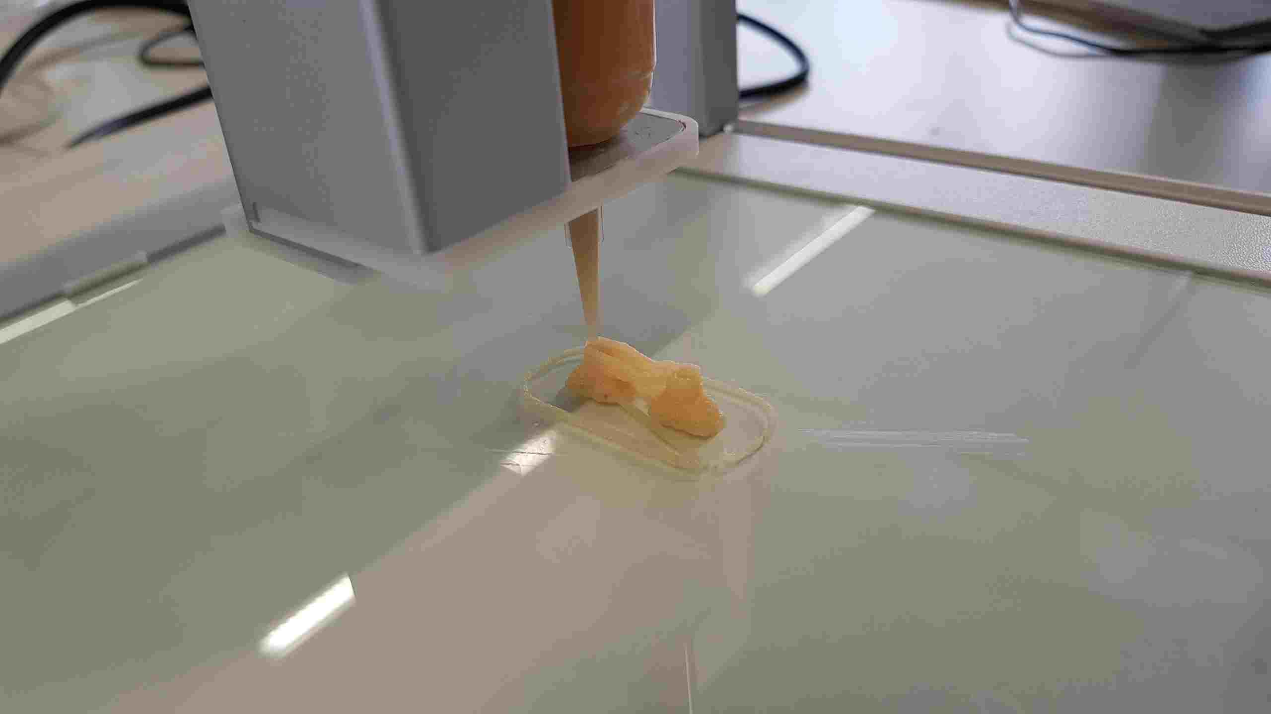 TaskDesign and produce something with a digital fabrication process (incorporating computer-aided design and manufacturing) not covered in another assignment.byFlow food printerWell for this week we have decided to use a byFlow food printer to print something with MarzipanOkay first thing thath we have to do is to download the Sli3er software, to print the food with this printer. And the settings for the nozzle that we will use for our purposes. Well we have choosen the 2nd from the right. Now after we have started the software, we have to load the configurations that we have downloaded, to proceed go to "File" -> "Load Config..."Well now import the object that you have made, in my case it is a bycicle. And export it as Gcode.Now we have to upload the code to the machine, in order to proceed, we have to turn th machine on. After there you will see an additional connection available in the connection list(in my case it is byFlow_AE5814). Join the conncetion with the password.Then open the browser and connect to the following IP adress: 192.168.0.1 . And you will enter this page. Press "next"So here you can upload you GCode.Okay now we have to prepare the material to work with, in our case it is marzipanPlace it into the tube and try to avoid any bubbles.Now you have to place the tube to the PasteHead.After you have placed the PasteHead back to the machine, you will have this notification on the machine displayOkay now we have to home the machine, to proceed go to "movement" and press "Home XYZ"The machine will home over this gray button.Now we can print. Go to the "Print" menu and select the name of the GCode that you have uploadad to the webpageAfter this you will see this window. Now press "Tune" to adjust the printing settings. So here we have to be vary carefull at the beginning, because we don't have the pressure, after we have placed the tude into the PasteHead. That's we have to start with the printing speed of 10 or 20% adn increase it up to 200% according to the material flow.You can also see how much % of the Gcode the machine has already executedPrinting xDWell here I have printed my bike standing, to see how the printig looks like at the bridges. So what I have discovered for my self is that the slicer doesn't make any support, so that the material fallse down.Here you can see my bike printed laying. You can also wee the material flow from the printing nozzle caused by the pressure after the printing.