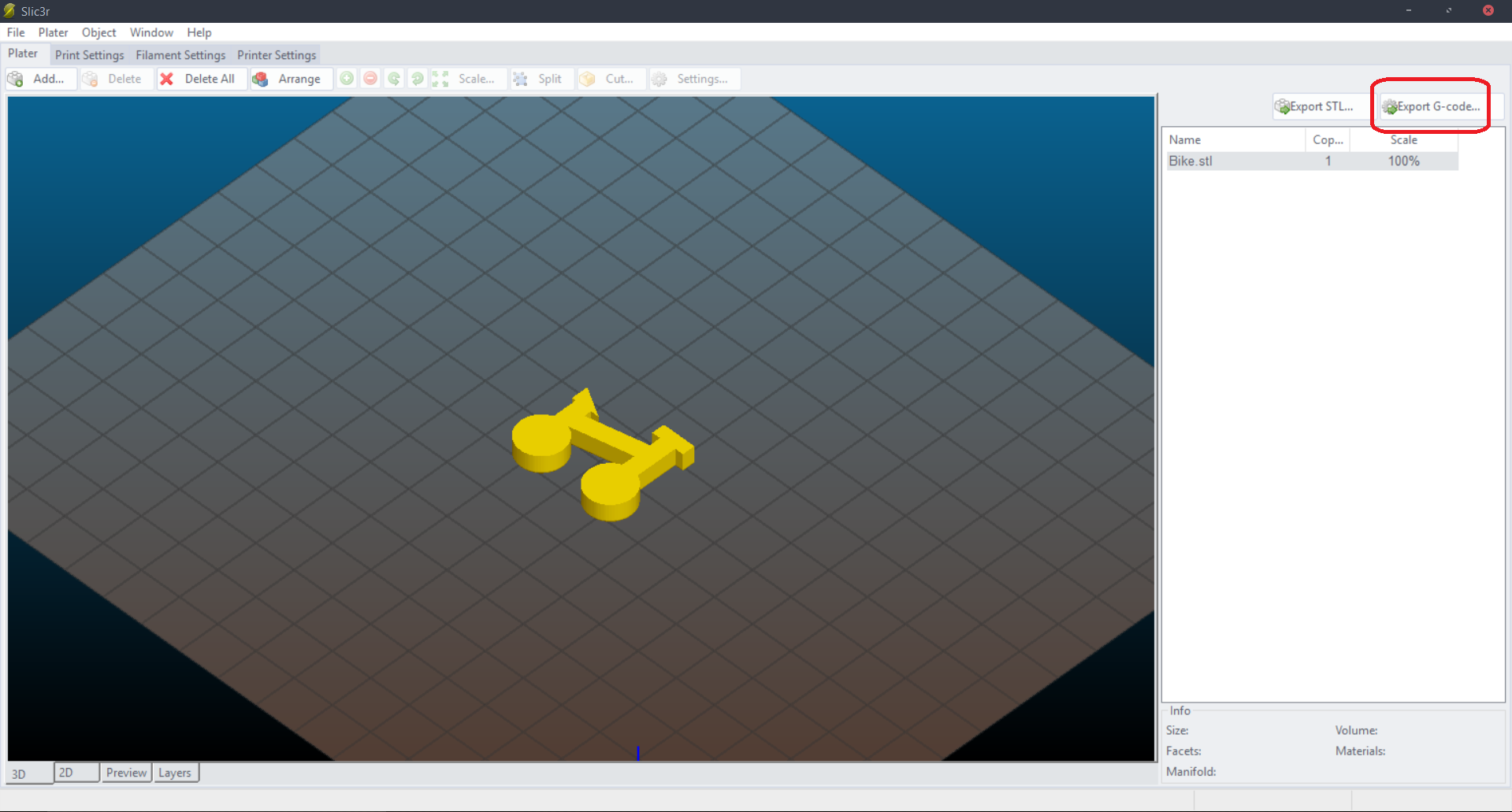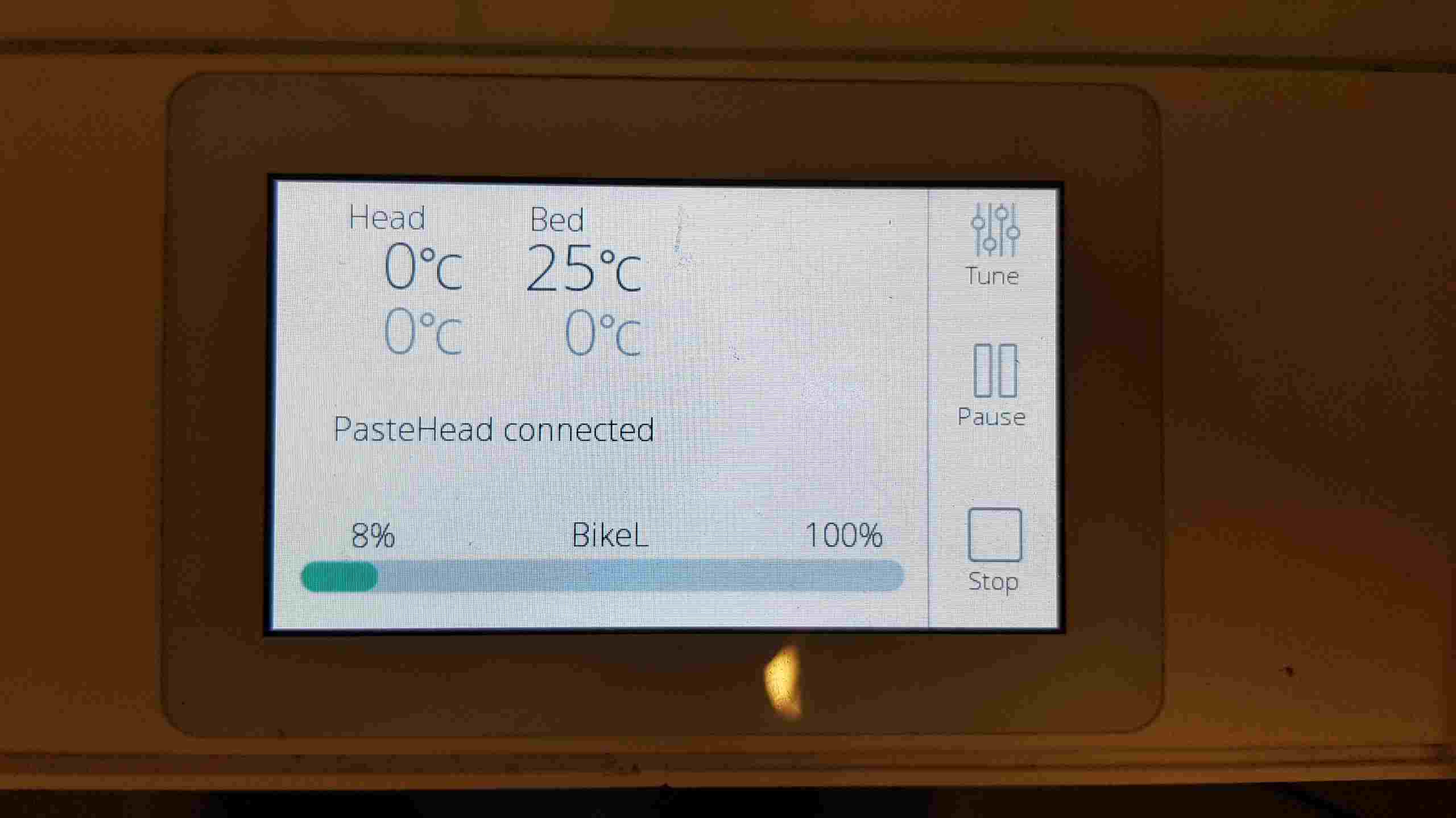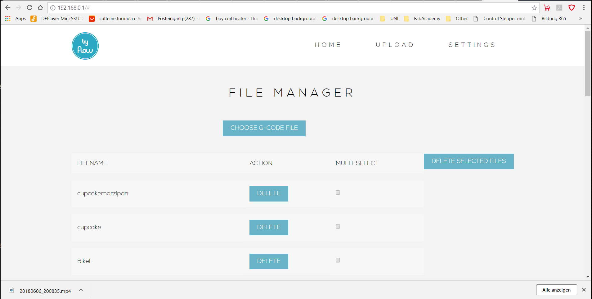TaskDesign and produce something with a digital fabrication process (incorporating computer-aided design and manufacturing) not covered in another assignment.byFlow food printerWell for this week we have decided to use a byFlow food printer to print something with MarzipanOkay first thing thath we have to do is to download the Sli3er software, to print the food with this printer. And the settings for the nozzle that we will use for our purposes. Well we have choosen the 2nd from the right. Now after we have started the software, we have to load the configurations that we have downloaded, to proceed go to "File" -> "Load Config..."Well now import the object that you have made, in my case it is a bycicle. And export it as Gcode.Now we have to upload the code to the machine, in order to proceed, we have to turn th machine on. After there you will see an additional connection available in the connection list(in my case it is byFlow_AE5814). Join the conncetion with the password.Then open the browser and connect to the following IP adress: 192.168.0.1 . And you will enter this page. Press "next"So here you can upload you GCode.Okay now we have to prepare the material to work with, in our case it is marzipanPlace it into the tube and try to avoid any bubbles.Now you have to place the tube to the PasteHead.After you have placed the PasteHead back to the machine, you will have this notification on the machine displayOkay now we have to home the machine, to proceed go to "movement" and press "Home XYZ"The machine will home over this gray button.Now we can print. Go to the "Print" menu and select the name of the GCode that you have uploadad to the webpageAfter this you will see this window. Now press "Tune" to adjust the printing settings. So here we have to be vary carefull at the beginning, because we don't have the pressure, after we have placed the tude into the PasteHead. That's we have to start with the printing speed of 10 or 20% adn increase it up to 200% according to the material flow.You can also see how much % of the Gcode the machine has already executedPrinting xDWell here I have printed my bike standing, to see how the printig looks like at the bridges. So what I have discovered for my self is that the slicer doesn't make any support, so that the material fallse down.Here you can see my bike printed laying. You can also wee the material flow from the printing nozzle caused by the pressure after the printing.