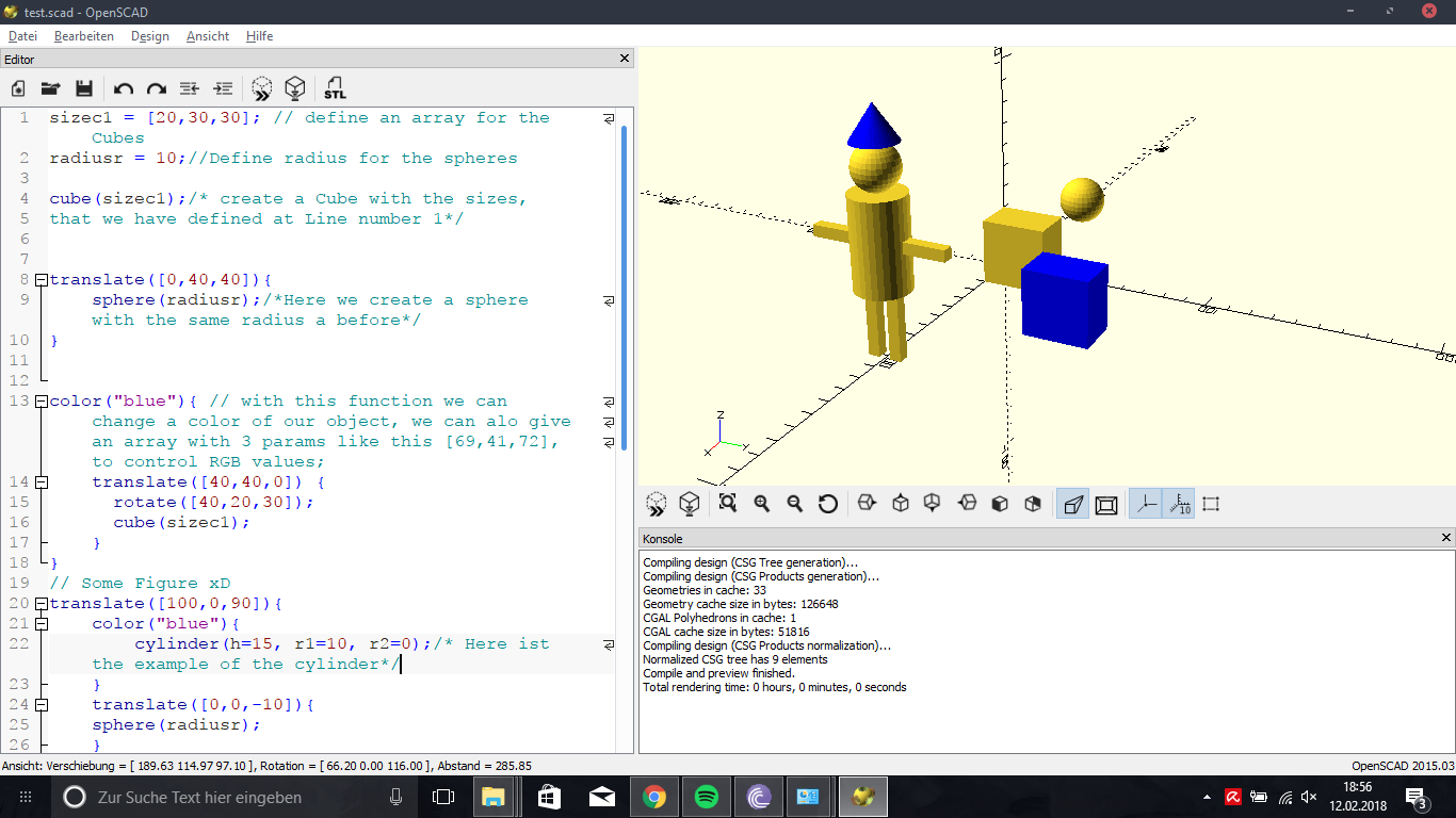 cylinder(h=15, r1=10, r2=0);/* Here ist the example of the cylinder*/