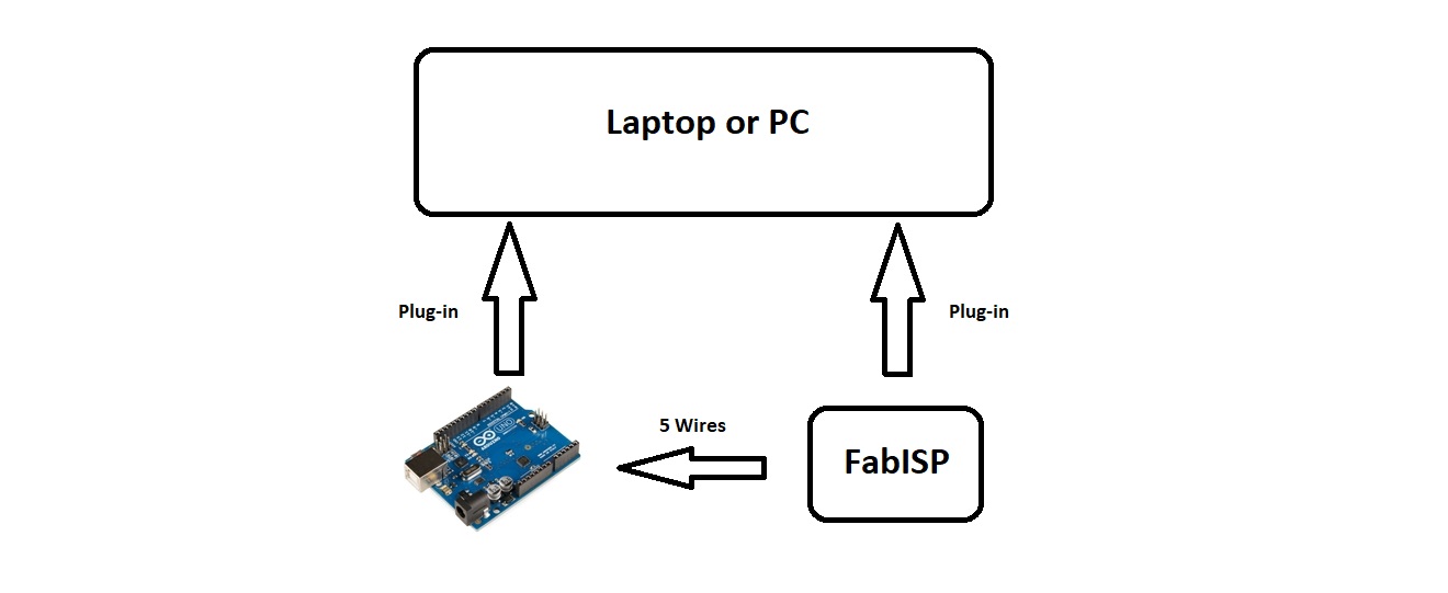First connect your FabISP this way, and make sure that Arduino, has ISP programmed on it.