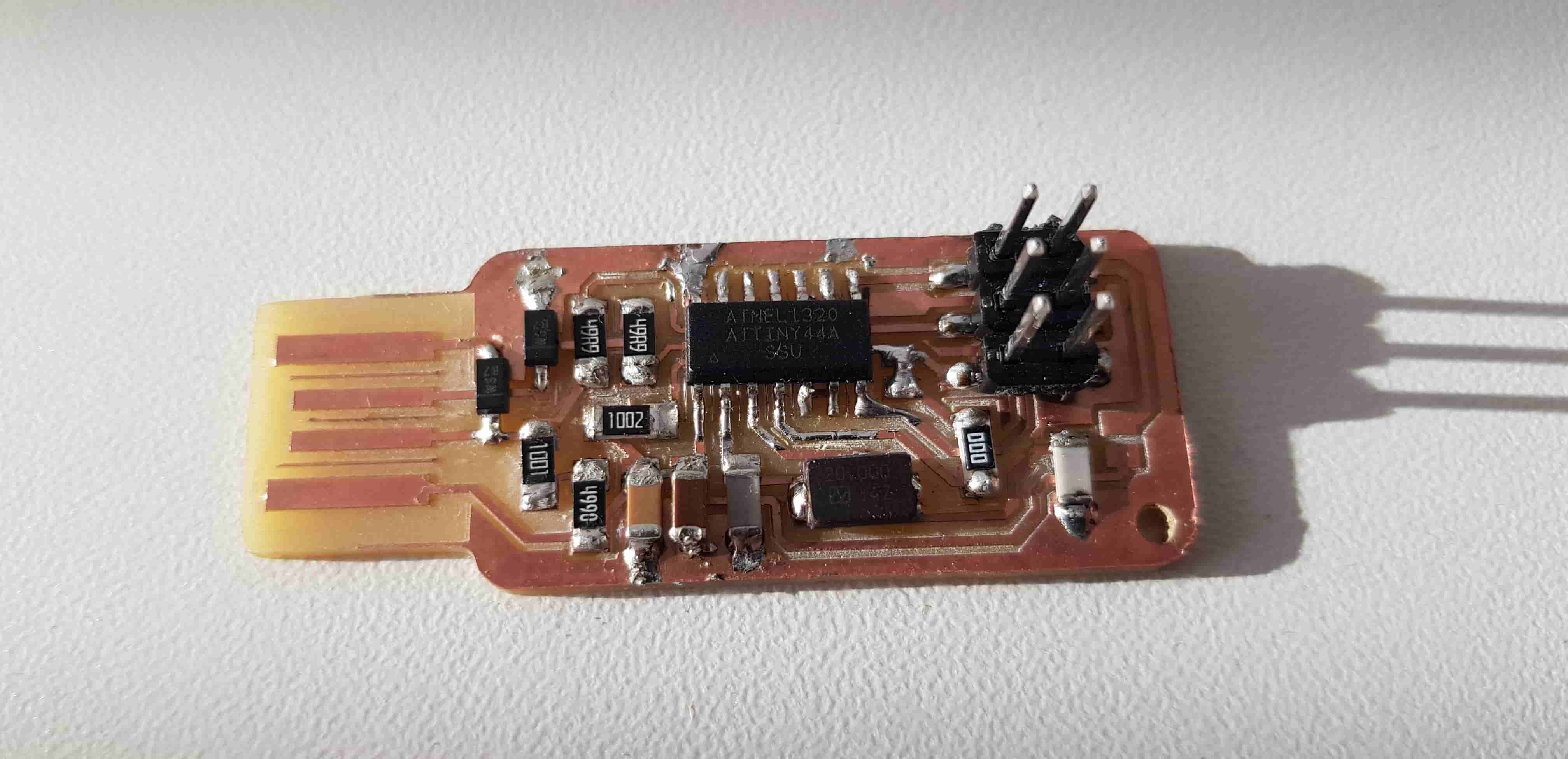 This is how my FabISP looks like after Soldering. Now we have to programm it. Don't forget to solder the jumper.