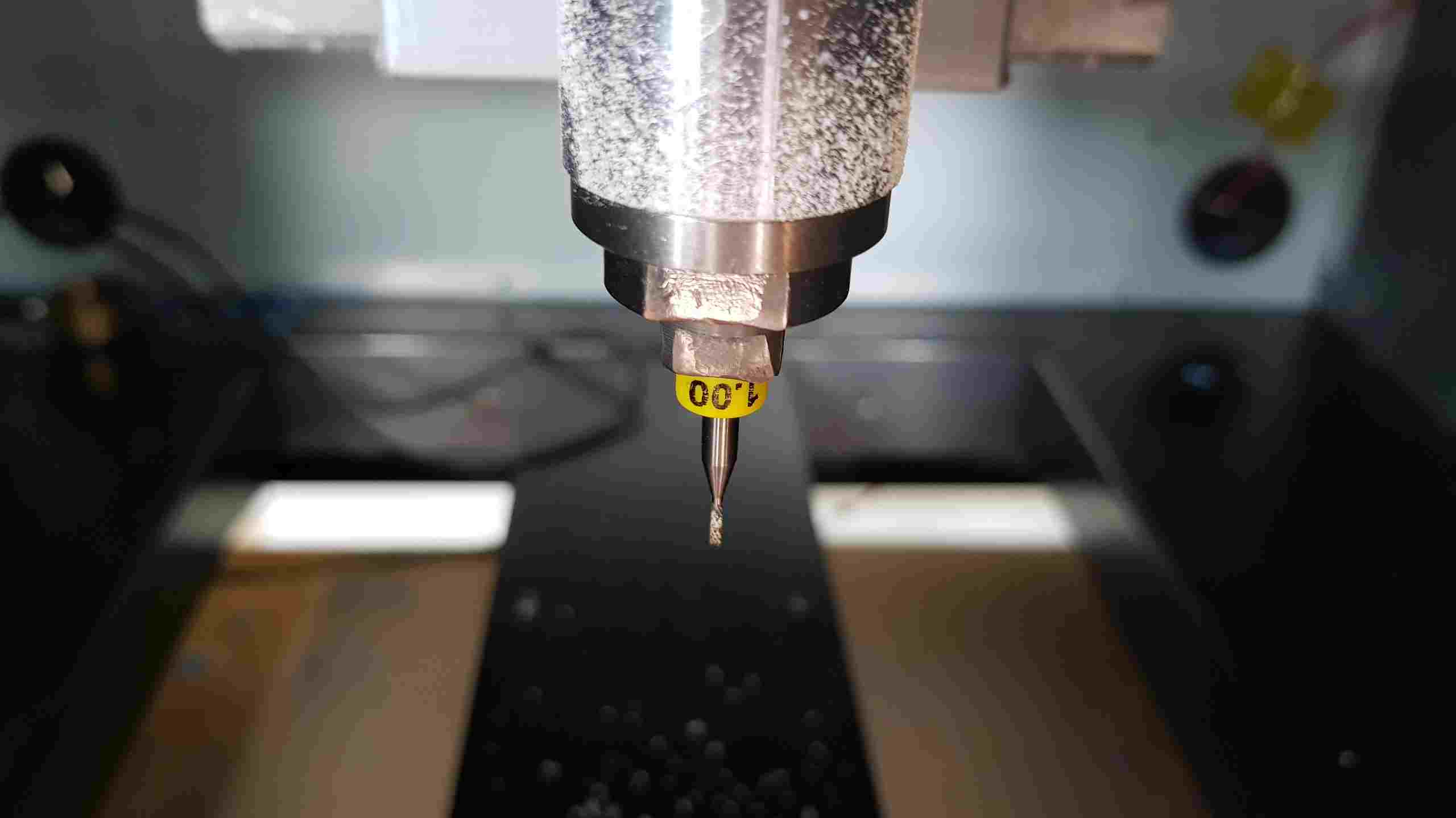 After we have milled the inside part, we have to change the tool to 1 mm in dm and lauch the cutout.