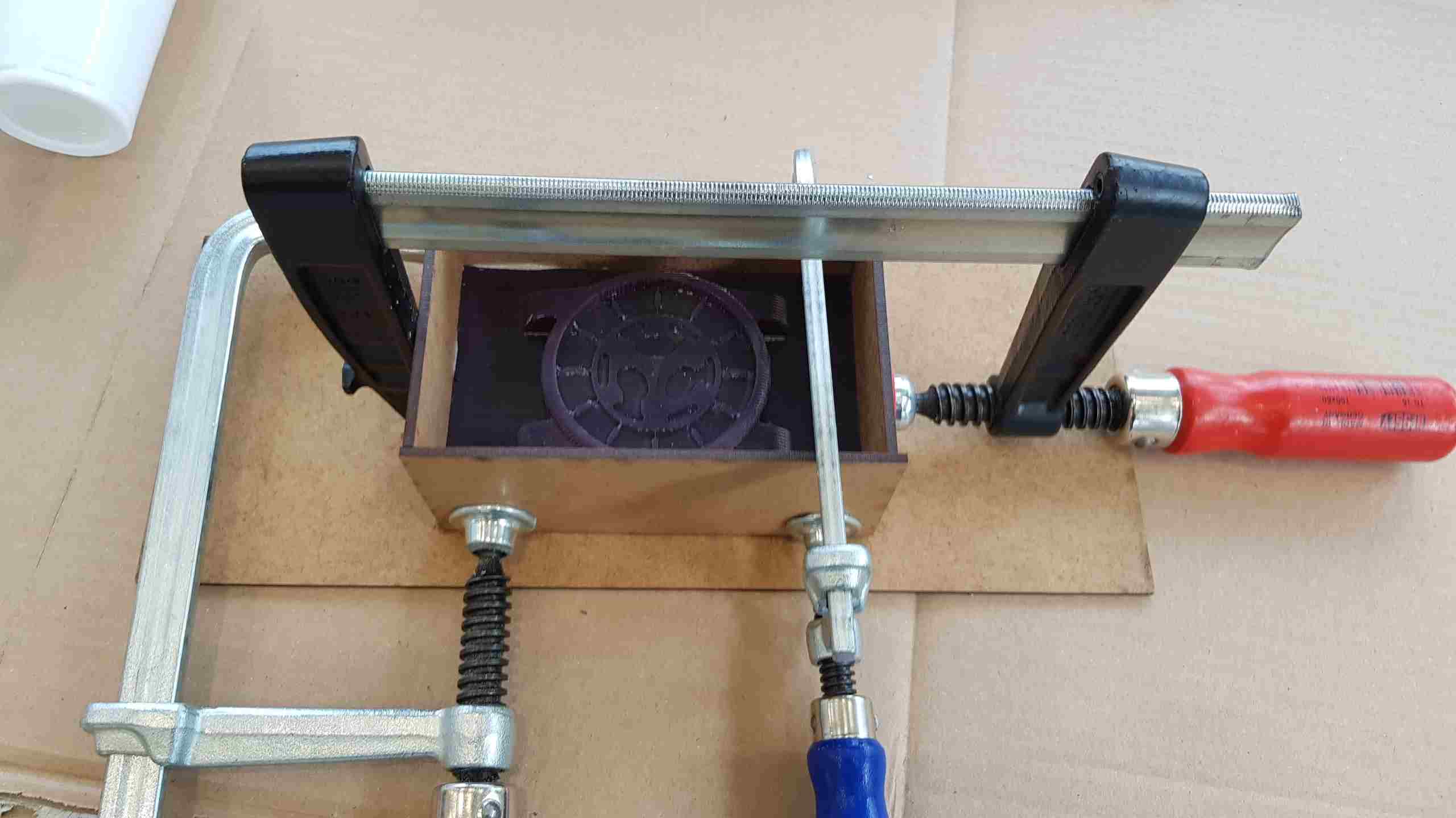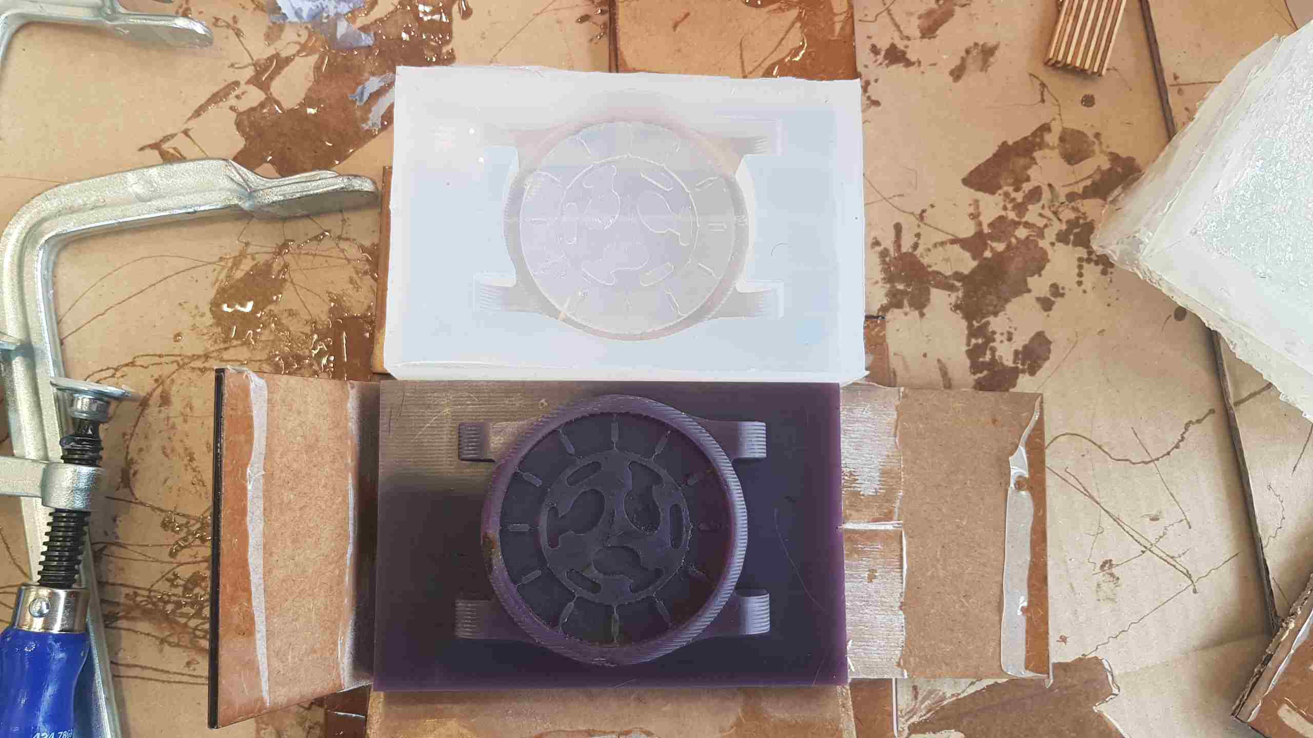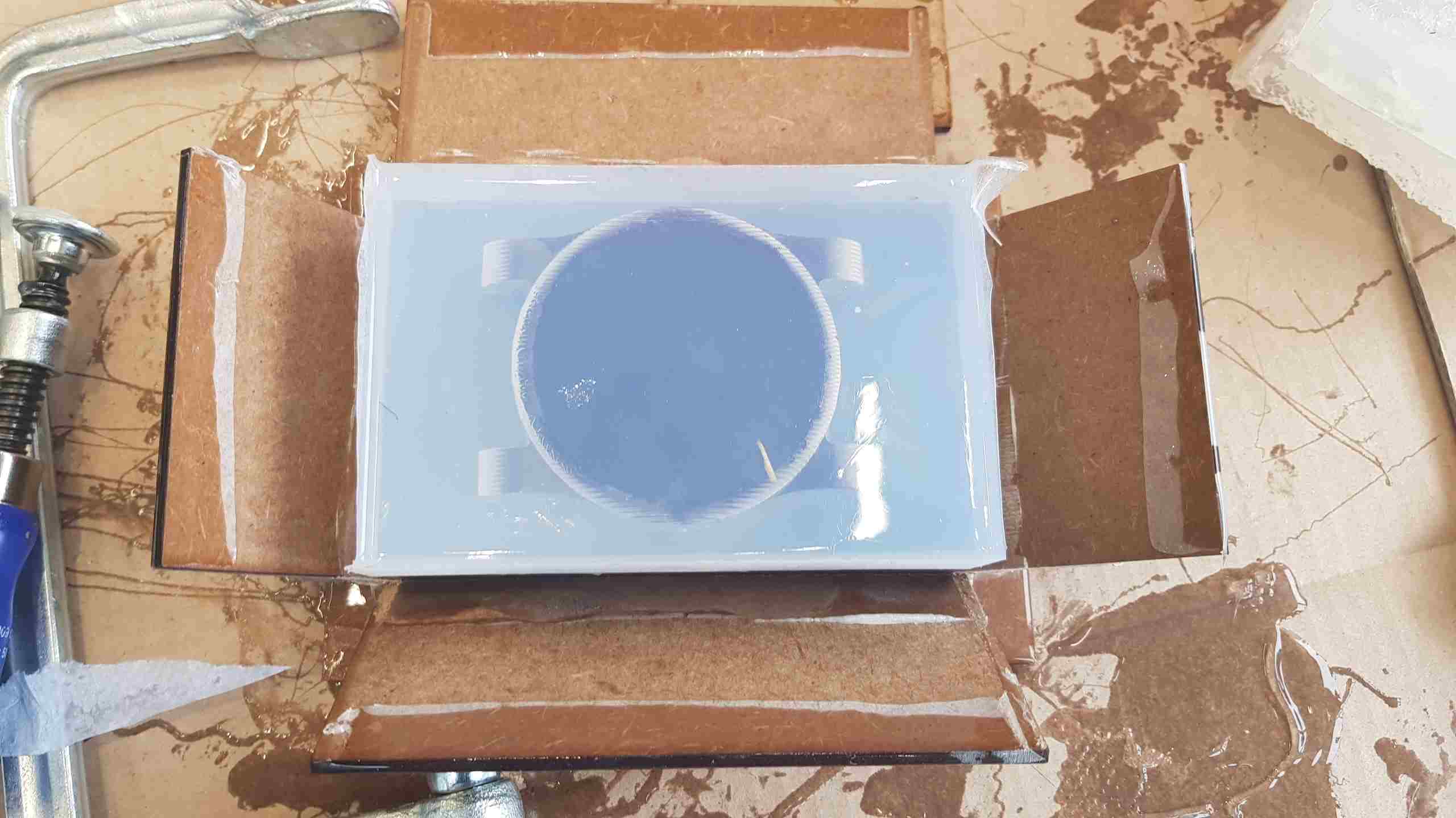 Pouring the siliconNow pour the liquid very carefully to the case.Vacuum MachineTo remove the bubbles, I have used th vacuum machine. Here you can see the main Switch. First, turn it on.At the other side of the vacuum machine we have a valve, to stabilize the press iside. Be sure, that it is closed at the beginningClose the door, and start the vacuum process.Here we can see how much atmospheric pressure is it now. Inside of the VideoThis is how it works. Here you can see, how all the bubbles, are commig up, they will collapse after some time.Here, how it looks after the vacuum machine, no bubbles.After the vuclanisation of the silicon.CastingFor the Casting I have used ProtoCast 120