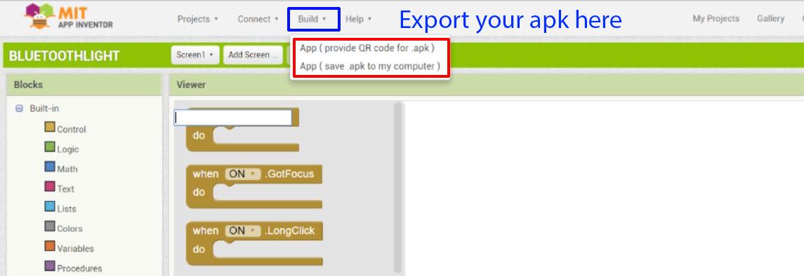The final step towards making your first android app is to export the apk file. There are two options, either you can scan the QR code download the app directly from your mobile phone or you can download it to your PC. I downloaded the apk file directly to my mobile phone.