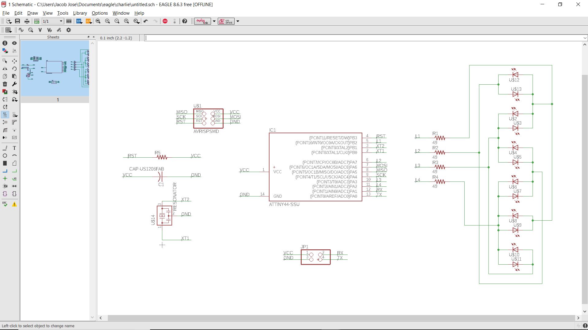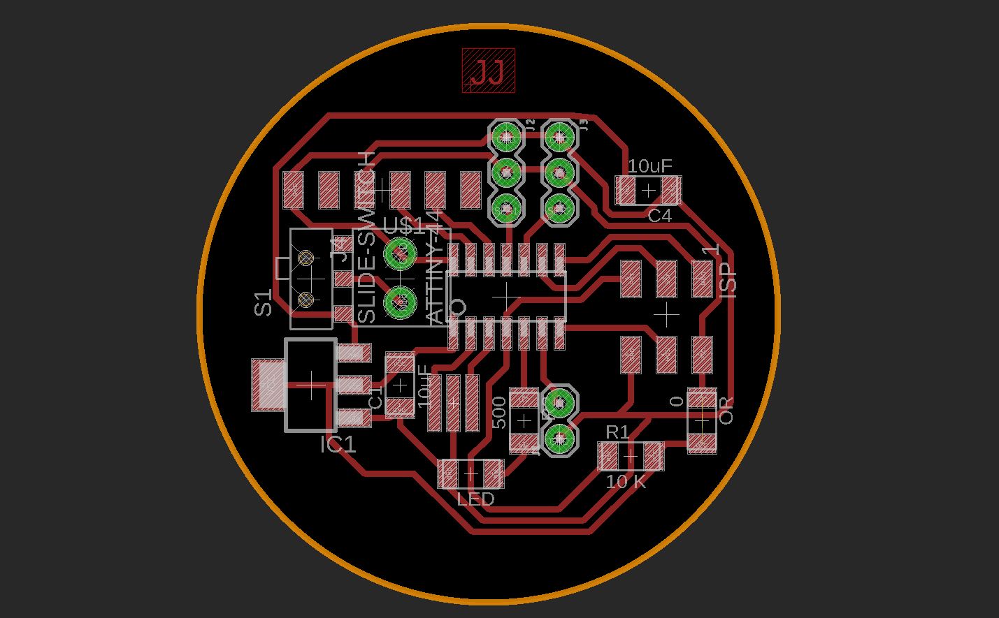Next I wanted to make a circular LED array taht I'll be using for my final project. I'll making an array of 12 LED and for controlling them I'll be using a Attiny44 MC.I'll have to use a method called Charlie Plexing since I dont have required LED pins in the ATtiny 44