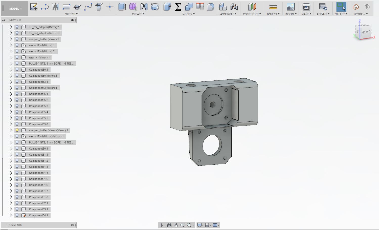 This one is used to hold the two stepper motors which will control the movement of the machine. It will also include the holes for the linear tubes for vertical movement and its bushes.