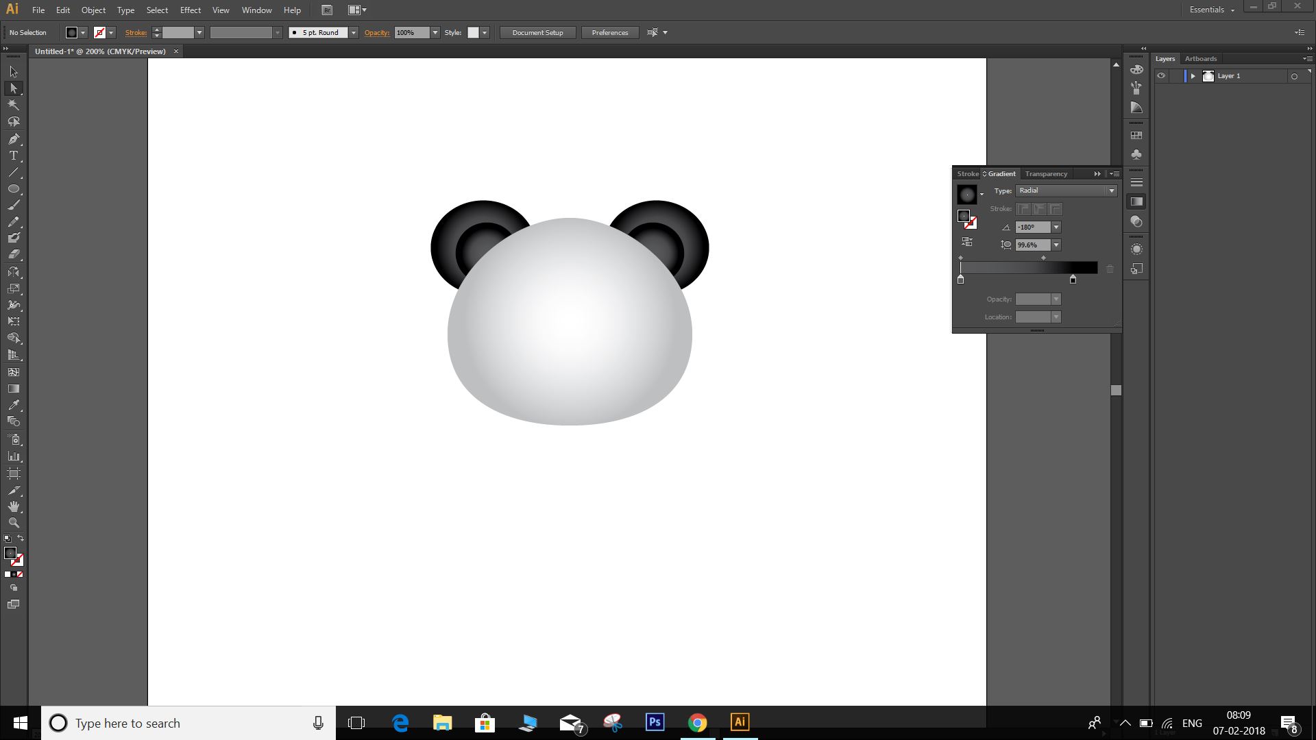 After this, I watched many tutorials of poster and illustration making. I thought to do some illustration using simple shapes. I tried to do the illustration of a panda.I tried some tools like gradient, pen tool, pencil tool, Shape builder, Reflection, brushes etc for making the same