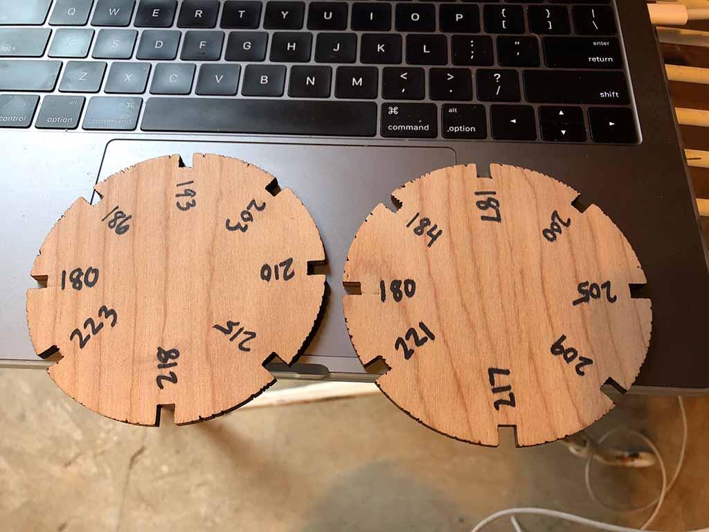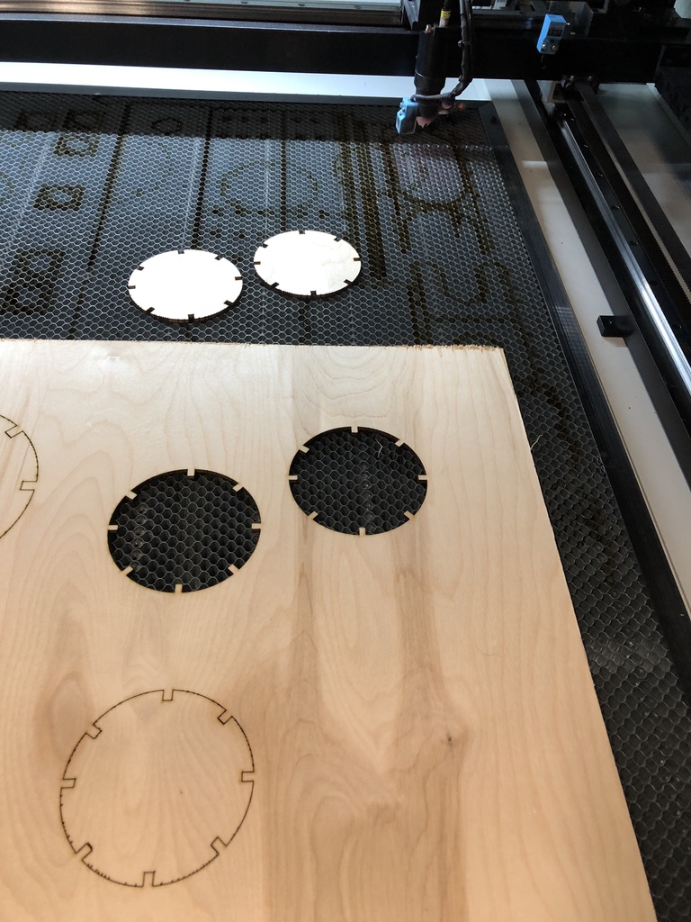 I use the same process as the gauge wheel to make the fidgets. After they are cut, I removed them from the laser and tried to find something to do with these things. I suppose I can use them in the winery as coasters?