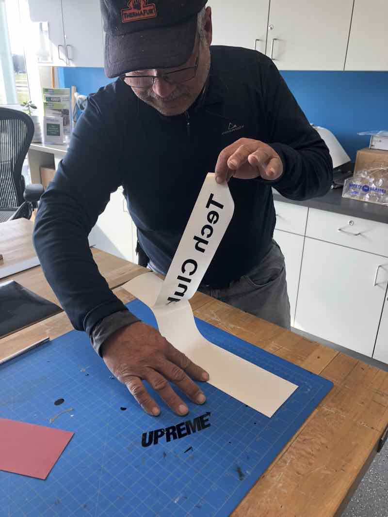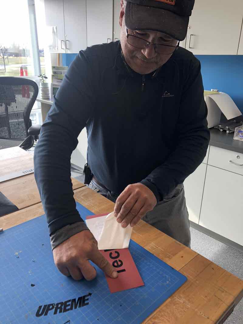 The piece of Vinyl I was given by my instructor was approximately 2 inches by 12 inches. I thought I would attempt a simple sign that I can cut on the vinyl cutter which reads "Tech Club". Since this was the first time have ever used a vinyl cutter, my instructor provided me with some one-on-one instruction. First, he guided me on how to load the vinyl into the machine.