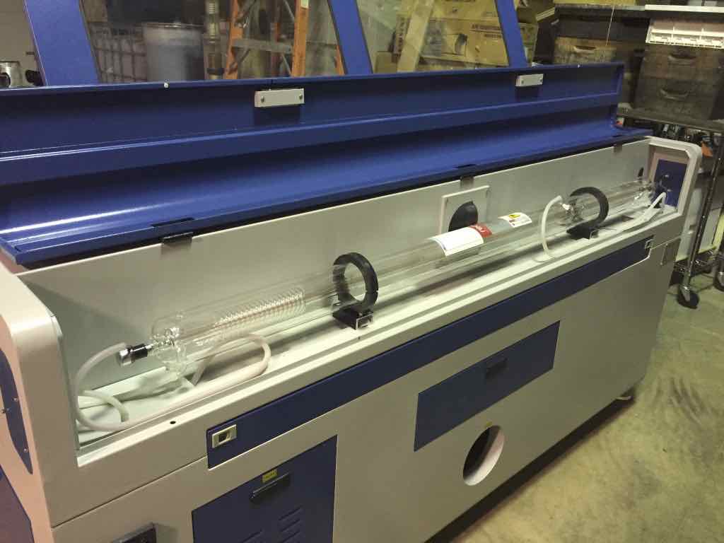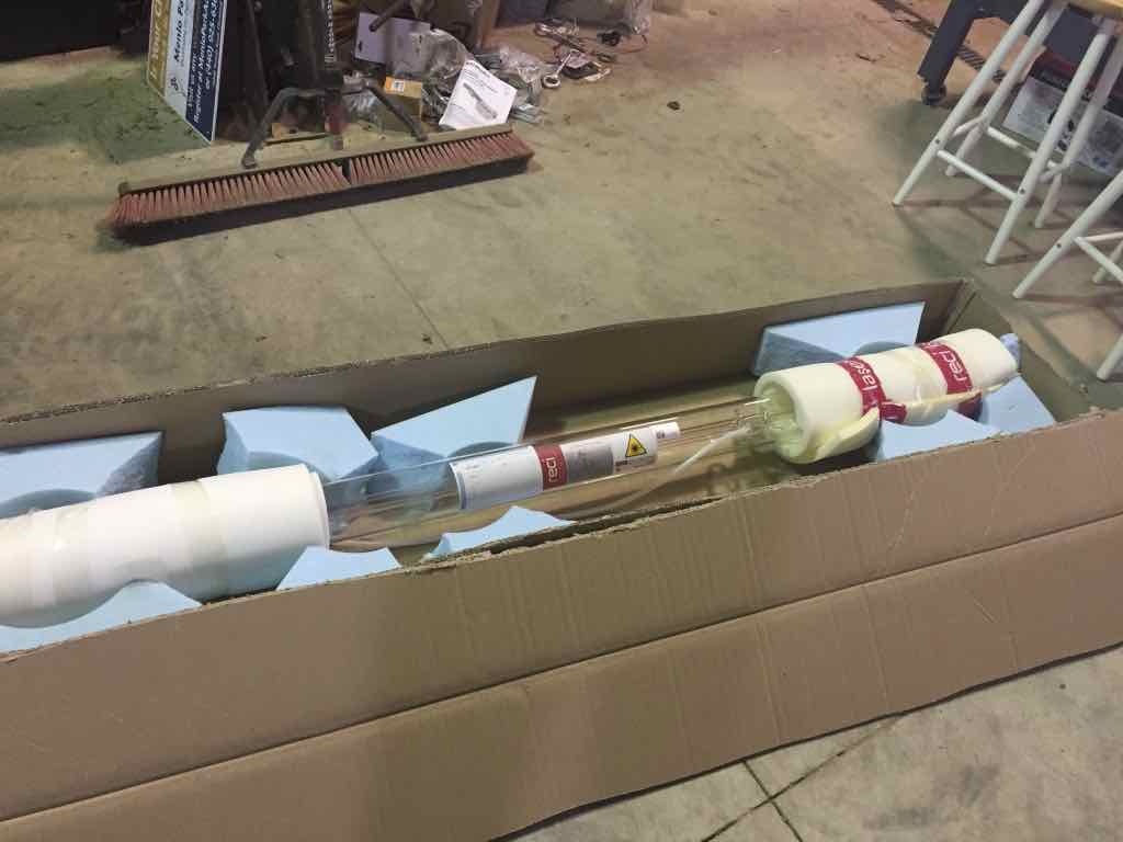 It is equipped with a 175 watt (W8) laser tube with a 1600mm x 1000mm bed. The laser tube, manufactured by Reci, was shipped in it's own box.