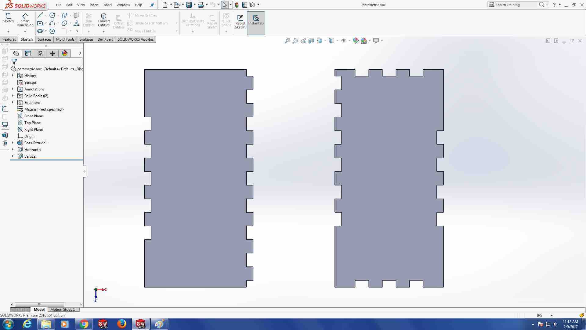 Solidworks is a large application which I have no prior experience with. I tried loading it on my 3 year old Lenovo laptop. The application brought the laptop to it's knees. The LCCC Fablab has two very capable workstations with Solidworks already installed. I ventured onto one of the workstations and started to explore.