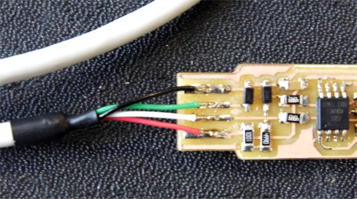 I decided to solder a USB cable directly to the board as plugging it into a USB port directly was not satisfactory. The table below shows the USB 2.0 cable color codes and the photos indicate what wire goes where.