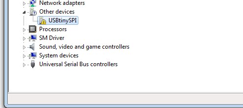 In Windows Device Manger select the USBTiny device and in Properties->Driver select Update Driver. Then select Browse my computer for driver software and browse to where the driver files are extracted. Click next and wait until the drivers have been installed