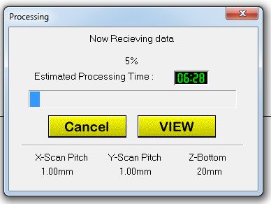The scanning pitch was set at the defaults of 1mm for both X and Y and the Z reference was set at 20mm. This would allow the probe to scan the upper half of the object in question. Once these parameters were set the scan button was pressed and the scan started. Note it takes a long time.