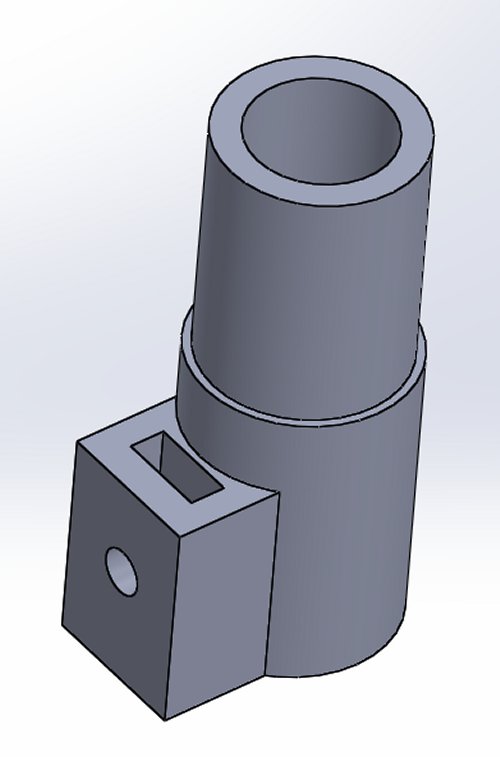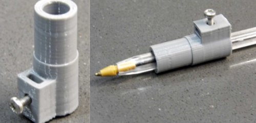 I discovered the above fixes later on during the Fab Academy. In the mean time I needed to produce a pen holder that my machine could print and design a part that could not be made using the subtractive process. Using SolidWorks I designed a part very like the original pen holder shown above but this time it would use a metal nut and bolt to clamp the pen in place