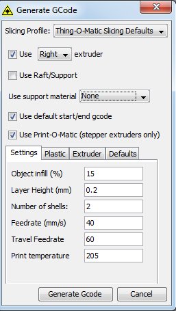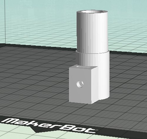 The SolidWorks part was saved as a binary stl file and printed using the Makerware software