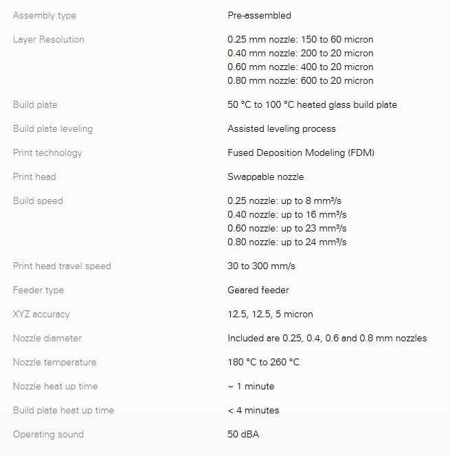 For the group part of this assignment we had to 3D print an object and then determine the quality of the printed object. For this test we used an Ultimaker 2+ which has the following specifications:
