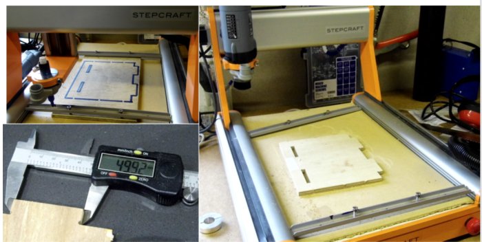 Before millling the test cut I placed a pen in the holder for the router and ran the Stepcraft so that it drew the test cut. Once I was satisfied