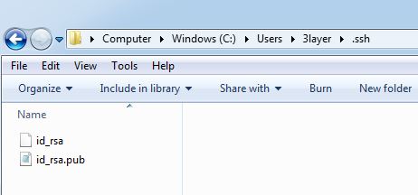 This should generate an .ssh folder in your computer's local user directory and save two SSH files to it . See example below.