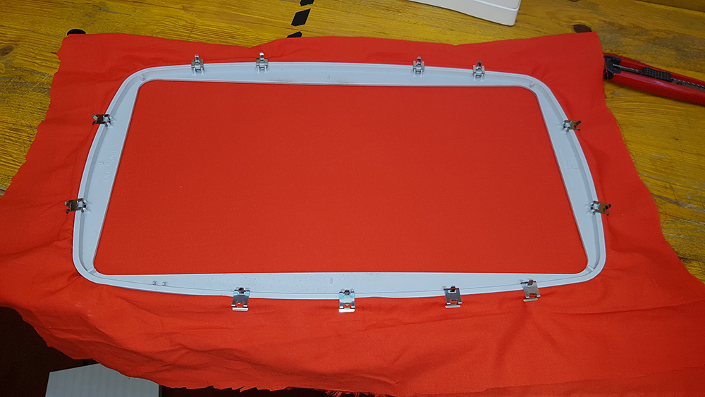 In the first step of embroidery, I only needed one fabric while for last step I will need another fabric to sewing togheter and create the puppet pocket to infill with stuffing. I chose an orange cotton fabric, in accordance with my niece's drawing, and I fixed it to the frame. The frame has a dimension of 200 x 360.