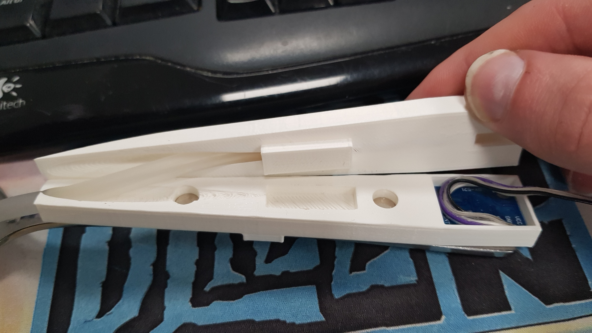 As meantioned before, to exceture plan B I needed to add a button to my prototype. I made the needed adjustments in fusion to my spoon holder and 3d printed it again. Then I sanded the shape and spray painted it with white primer. On the motor circuit board I connected the button to a unused pin of the 6 pin programming header which connects to the microcontroller.