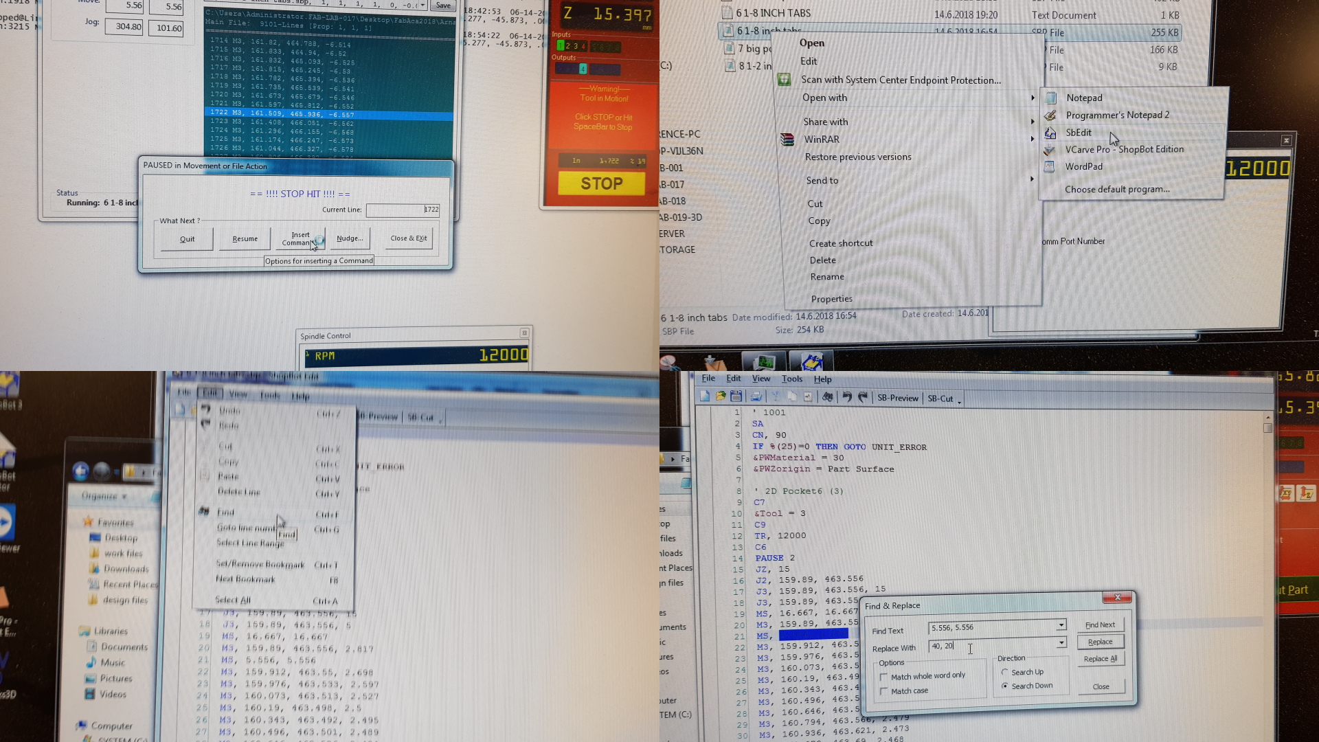 I had minor issues that the stepdowns were rather slow and the settings in Fusion didn't allow me to change the settings. So Bas showed me a workflow to change the speed in the g-code itself. To do that we opened the code with the Shopbot editor and used the find option to replace all the codes that were for the stepdowns and changed them to speed it up.