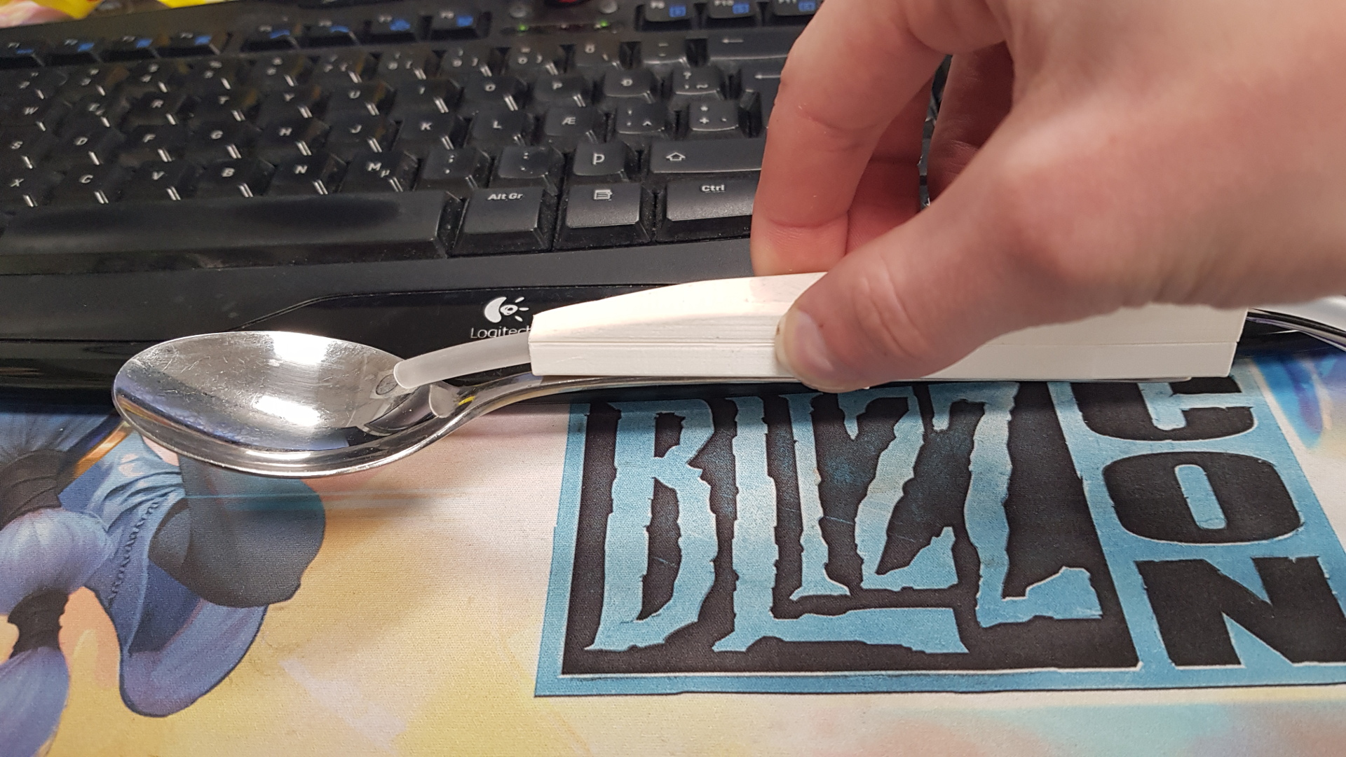 - 3d printed spoon handle (100 grams PLA). 1000 kr