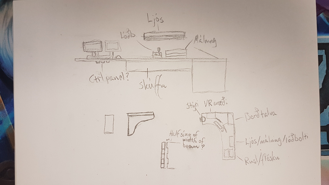 For this week we attended the first lecture of FabAcademy 2018 and learned about how the FabLabs came to be and how they operate. The only assignment that we got was to think about our final project. What I have in mind for my final project is a large desk for my bedroom. The desk will consist of trash/bottle-bin, a section to workplace where I could paint minatures, 3d models and soldering station. In the corner I will place my PC there and at the end will be a driving wheel and a place for my VR headsets. I was thinking about to have the bins opened by motors, have a light above the workplace, maybe RGB LED's under the desk wich sync with music input and all that can be controled at the corner. Below is a rough sketch of an idea how the desk will be. One thought came to mind from my instructor is to have each section of the desk seperated so in the future I might be able to change it. My main focus is on the workspace section which is going to elevate up and down so I can either sit or stand at it.