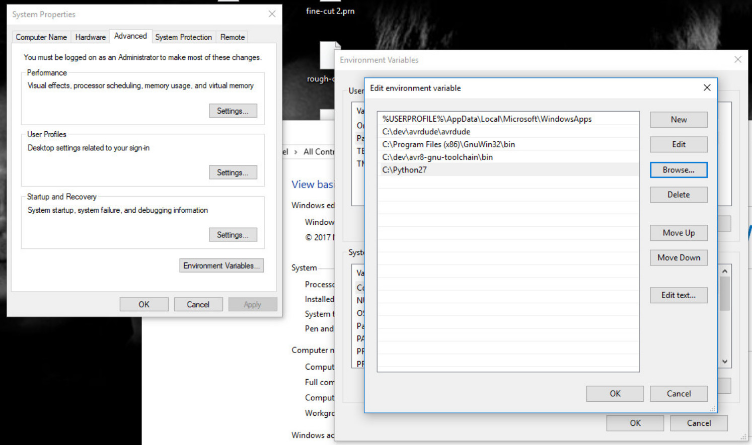 Then I installed Python, then I had to put the python command to "Path" command so I could install the programs to run the Python program to display the values of the sensor.