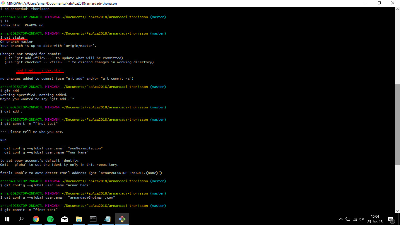 As seen in the image below I started with "git add ." wich adds the files I want to be pushed on the website and after trying to commit I had to set up some info before commiting for the first time and after that was finished I only had to do is "git push" and it's as simple as that.