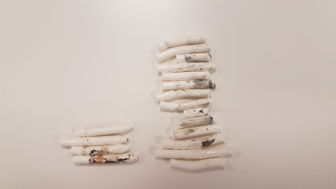 From both prints in the Ultimaker 3 Extended you can see there's black residue and after looking at the picture Svanur made, we saw that it was the print nozzle was dirty so we cleaned it with