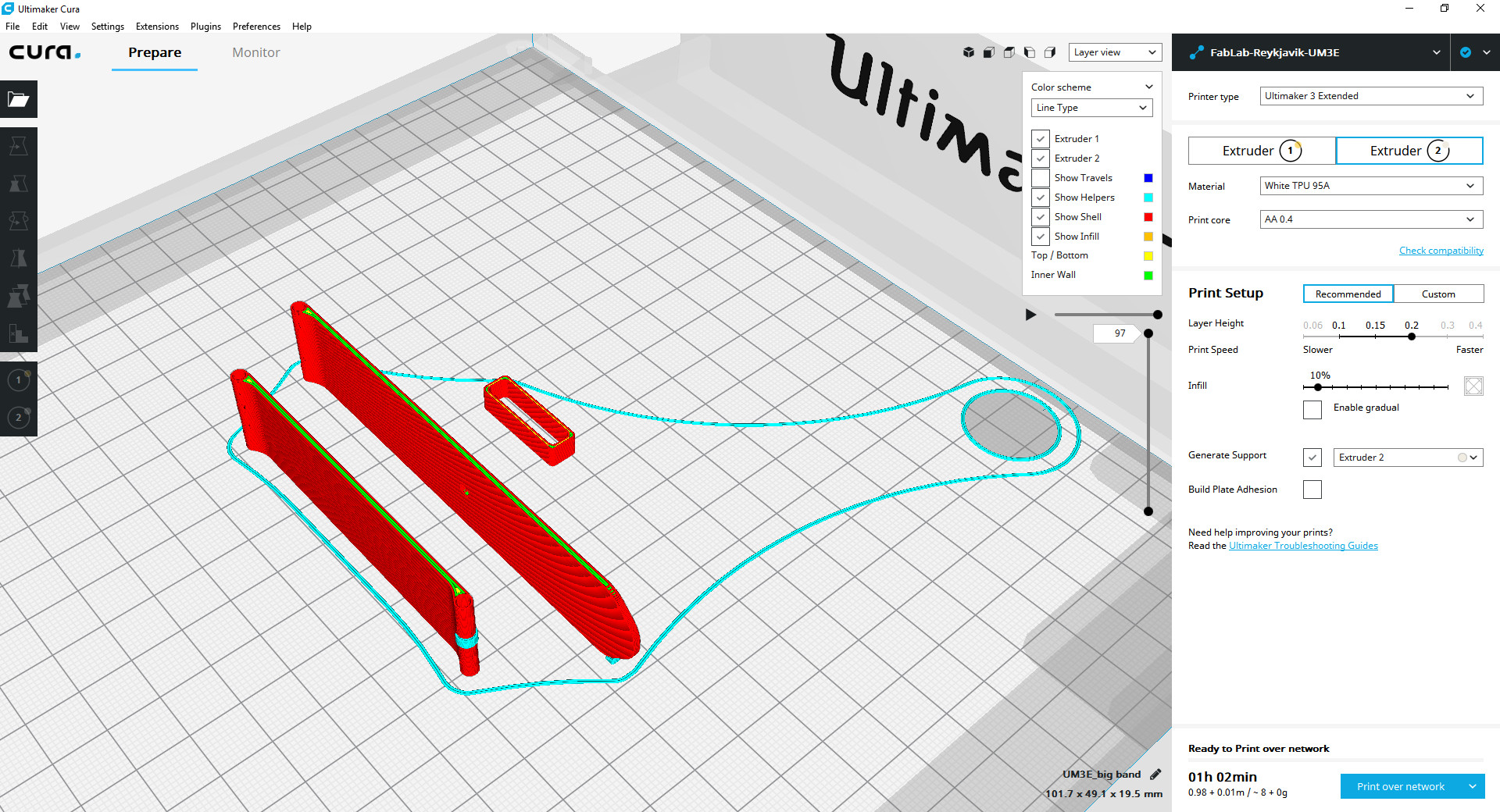 Then I tried to use PVA wich is a dissolvable fillament and use Ultimaker 3 wich has dual extrusion.