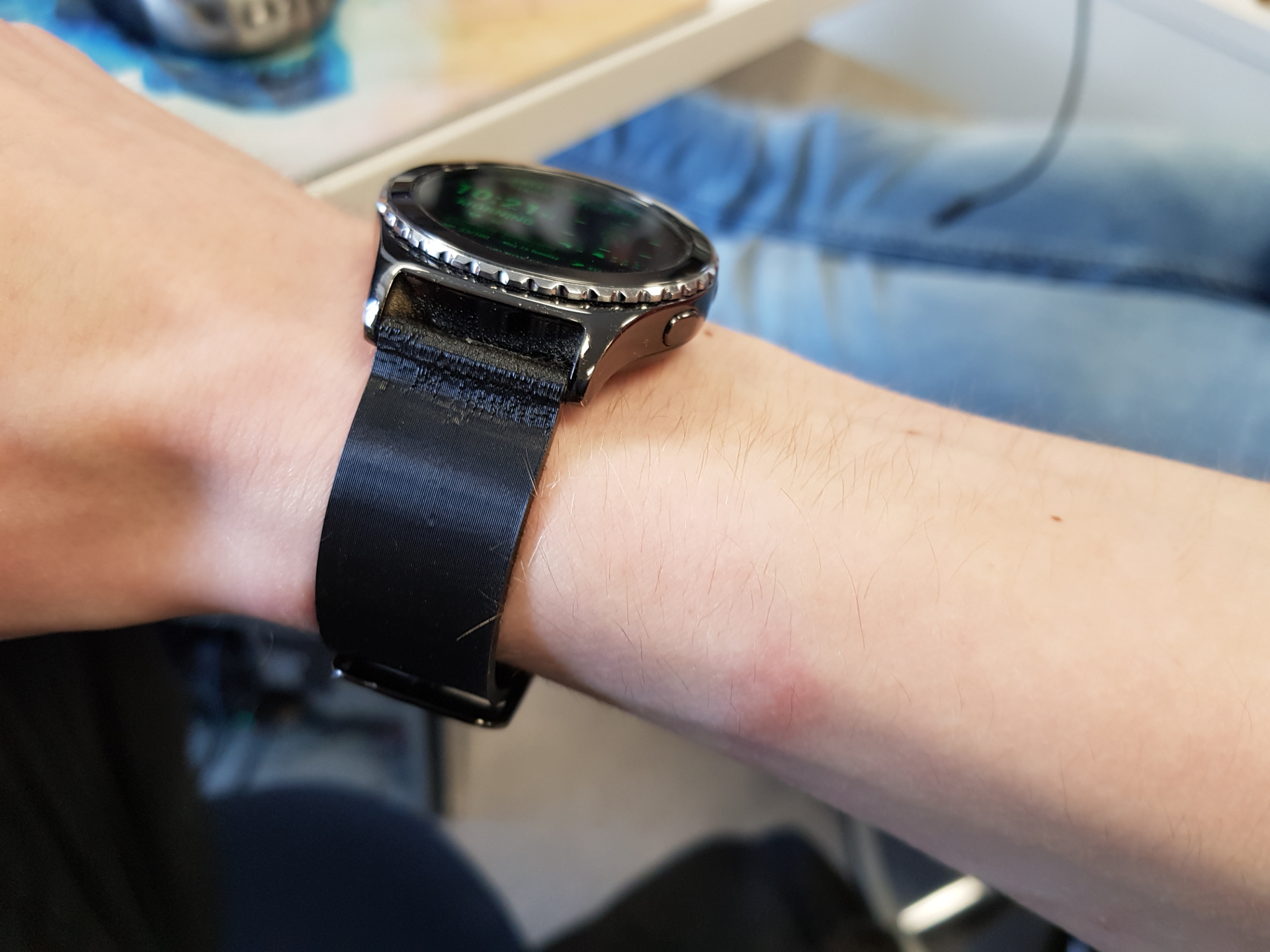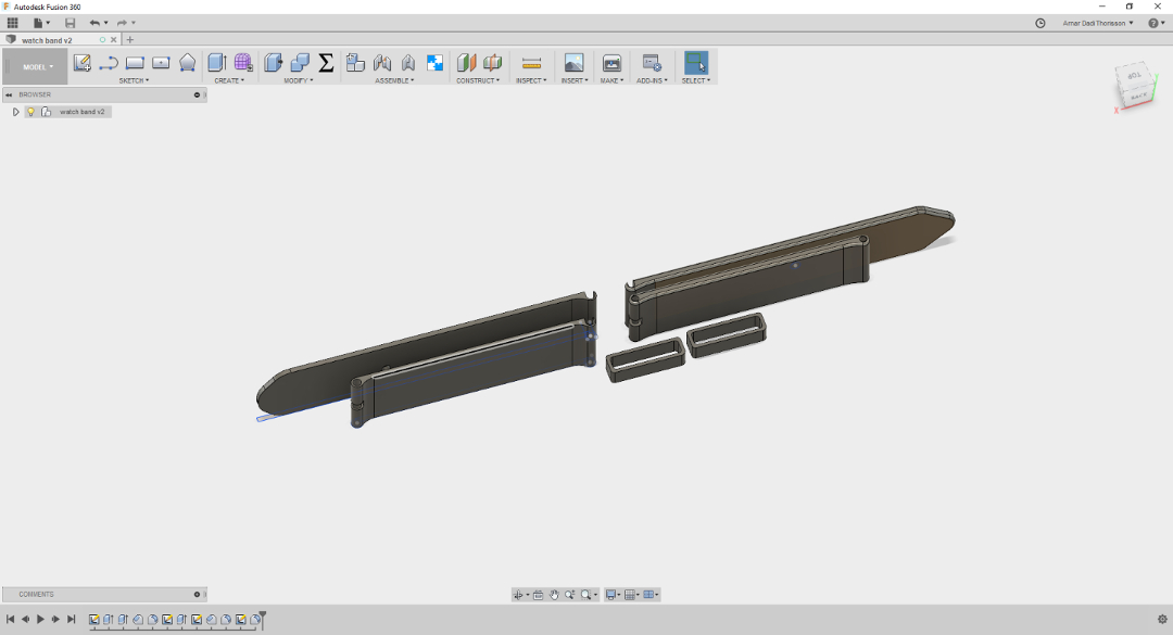 We have TPU in the lab wich is a flexible fillament and was worth a try to experiment with. Then I measured my old band and sketched it out in fusion and for the holes I used parameters. After that I printed it and it came out really nice.
