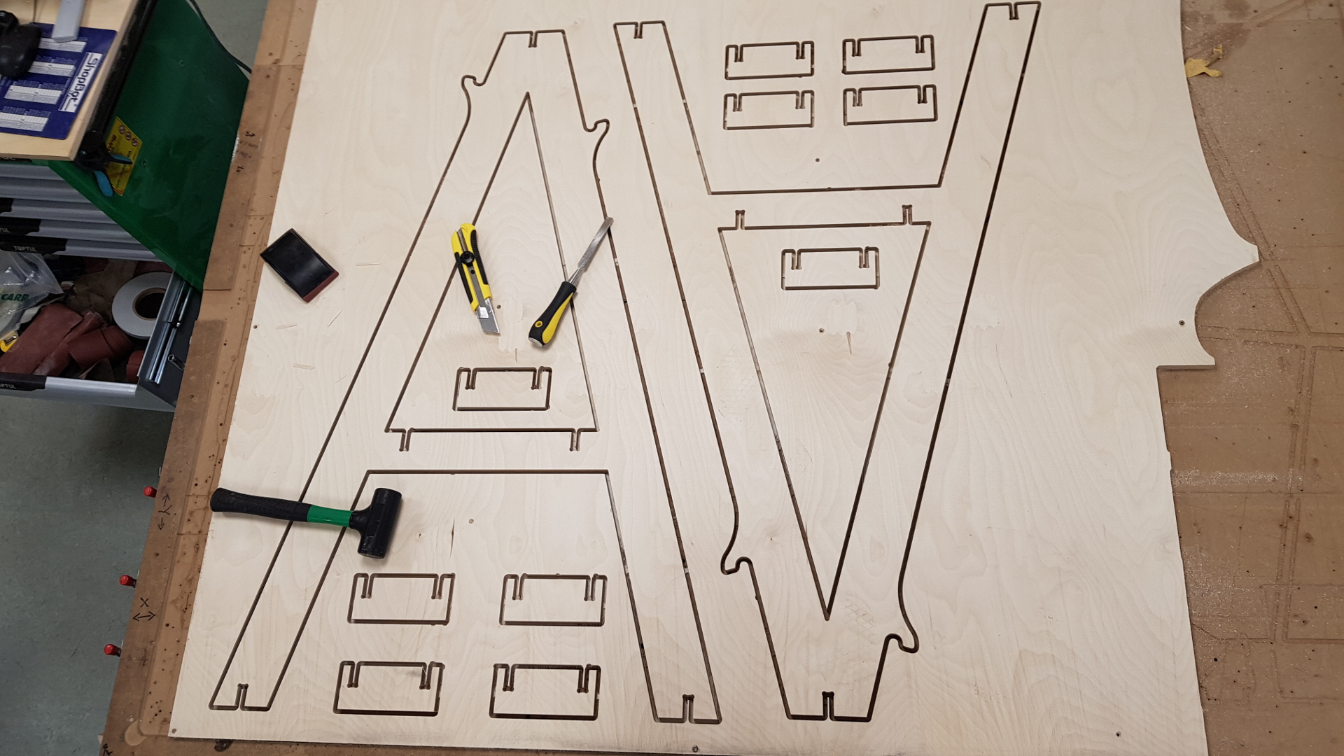 So after cleaning the machine we cut out a piece that fit together and what we found out there was the difference from the cut and the design. It was a millimeter thicker than in the design but the cutout did slot nicely together.
