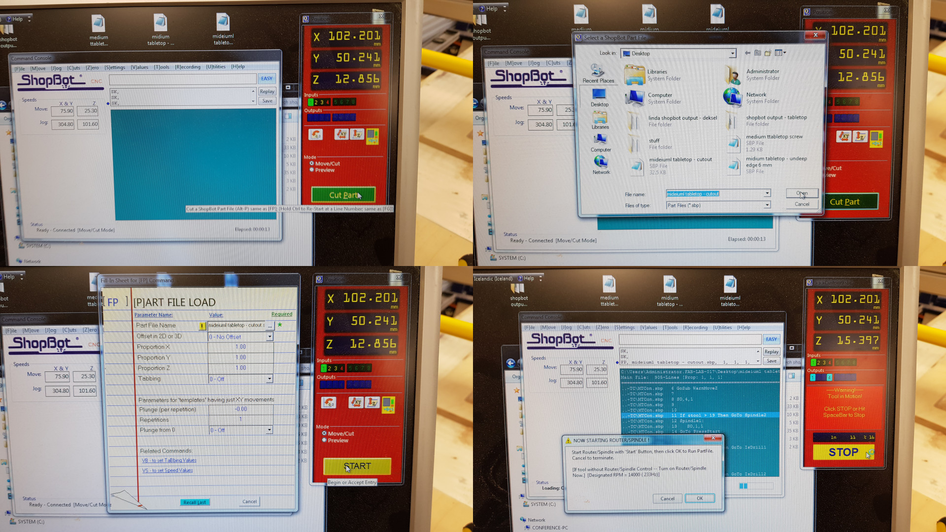 Then I open the file in the Shopbot software and run it. Before running the toolpath, always make sure you have set the zero points, the material is fastened to the bed and is flat, tightened the tool and you are wearing the propper safety equipment. The Shopbot is the most dangerous machine in the lab, so I always double check everything before running it.