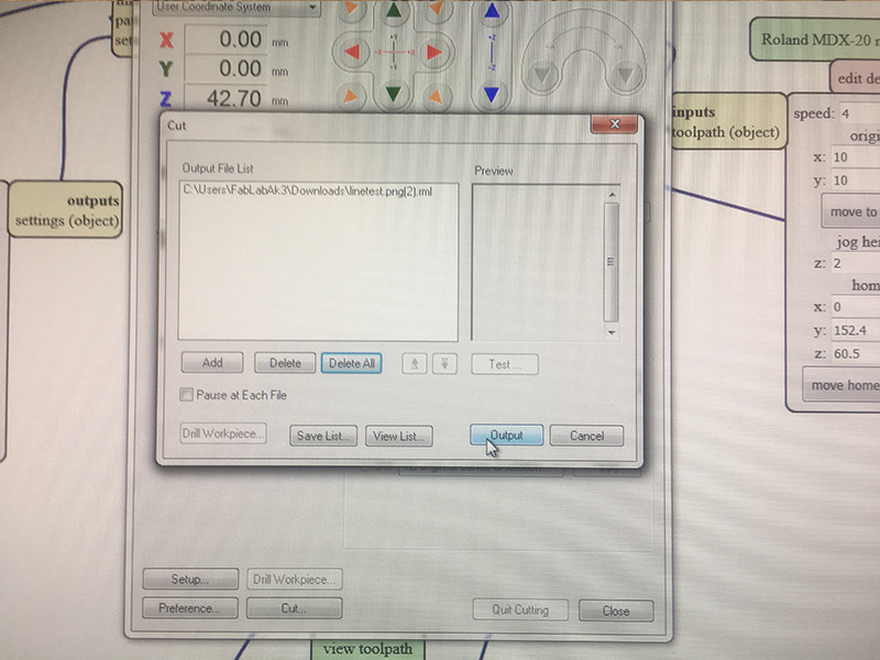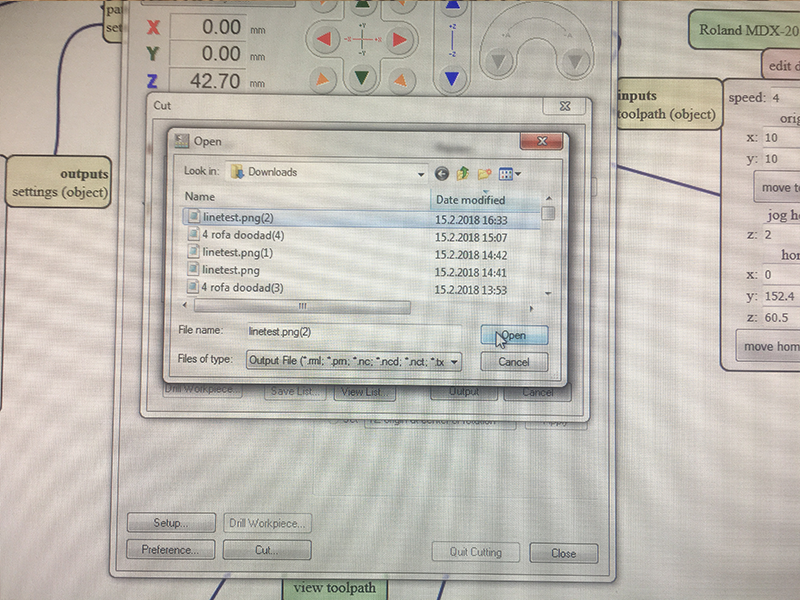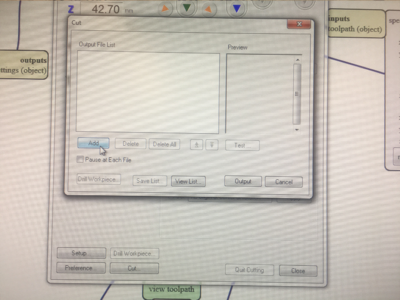 Since im usin windows I dont have a straight connection to the cnc. I add the saved file to Vpanel and press output
