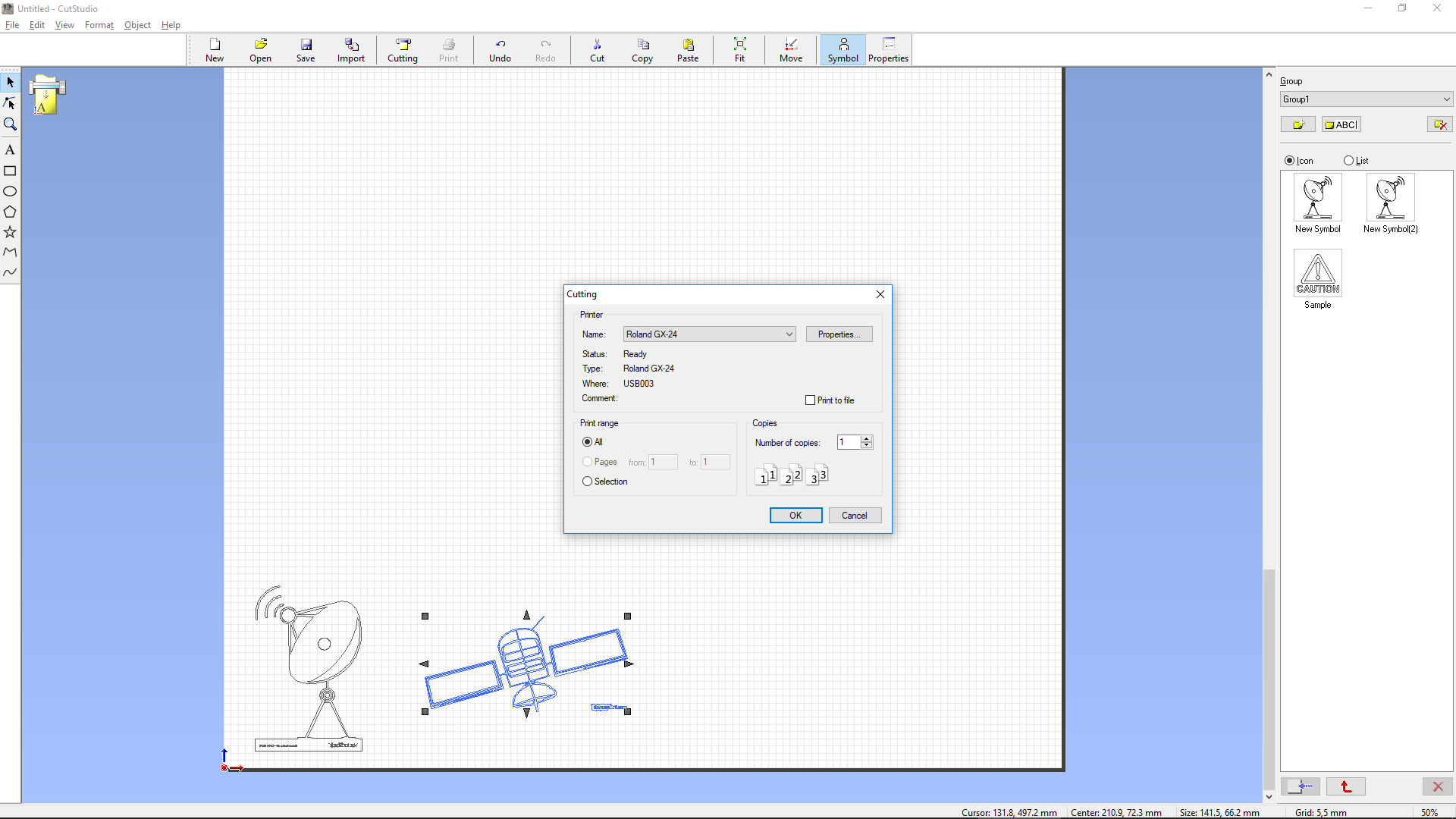 With Vinly cutter I imported 2 images one of a full satellite and one of an antenna that symbolises a groundstation which i downloaded on google,Then I imported them into CutStudio and cut it.After I rubbed it on my computer for it to stick well.