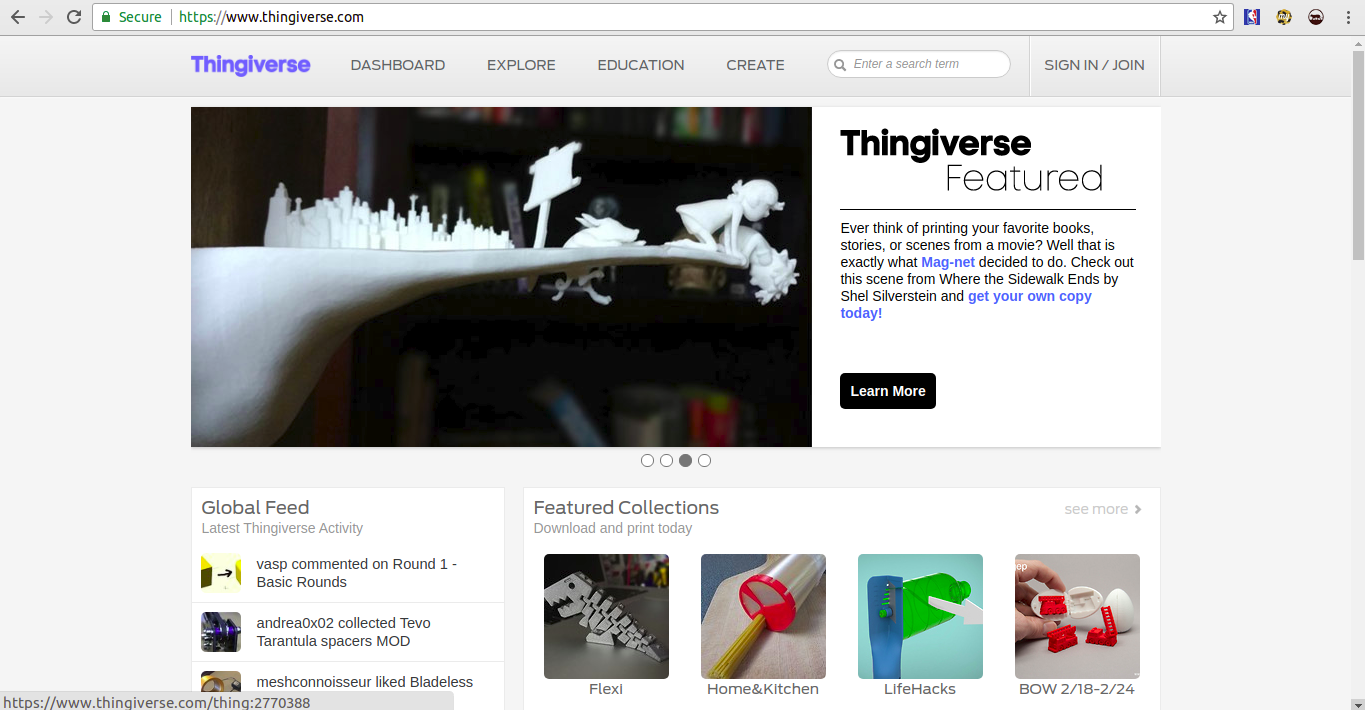 Thingiverse is a website dedicated to the sharing of user-created digital design files. Providing primarily open source hardware designs licensed under the GNU General Public License or Creative Commons licenses, users choose the type of user license they wish to attach to the designs they share. 3D printers, laser cutters, milling machines and many other technologies can be used to physically create the files shared by the users on Thingiverse.