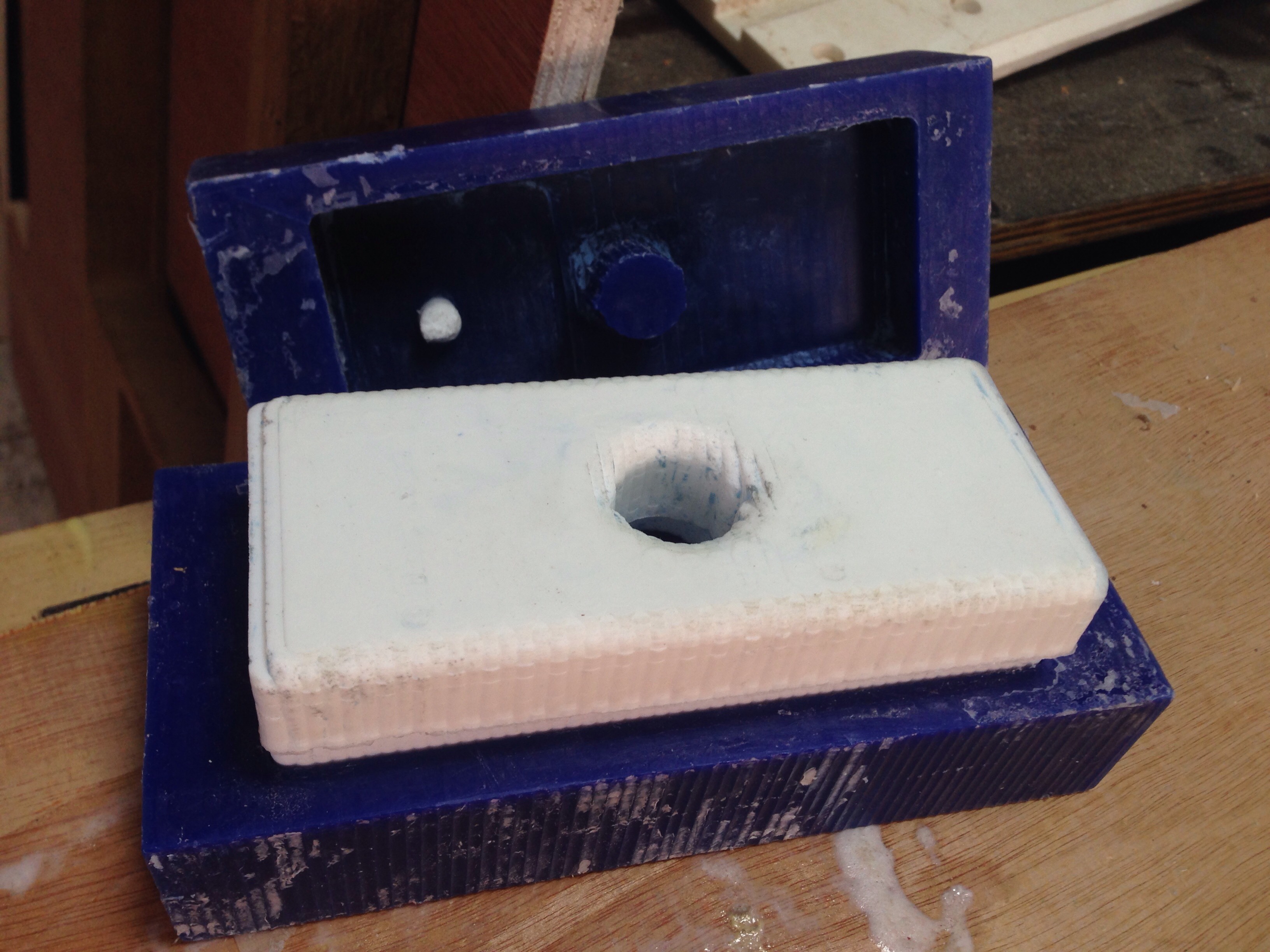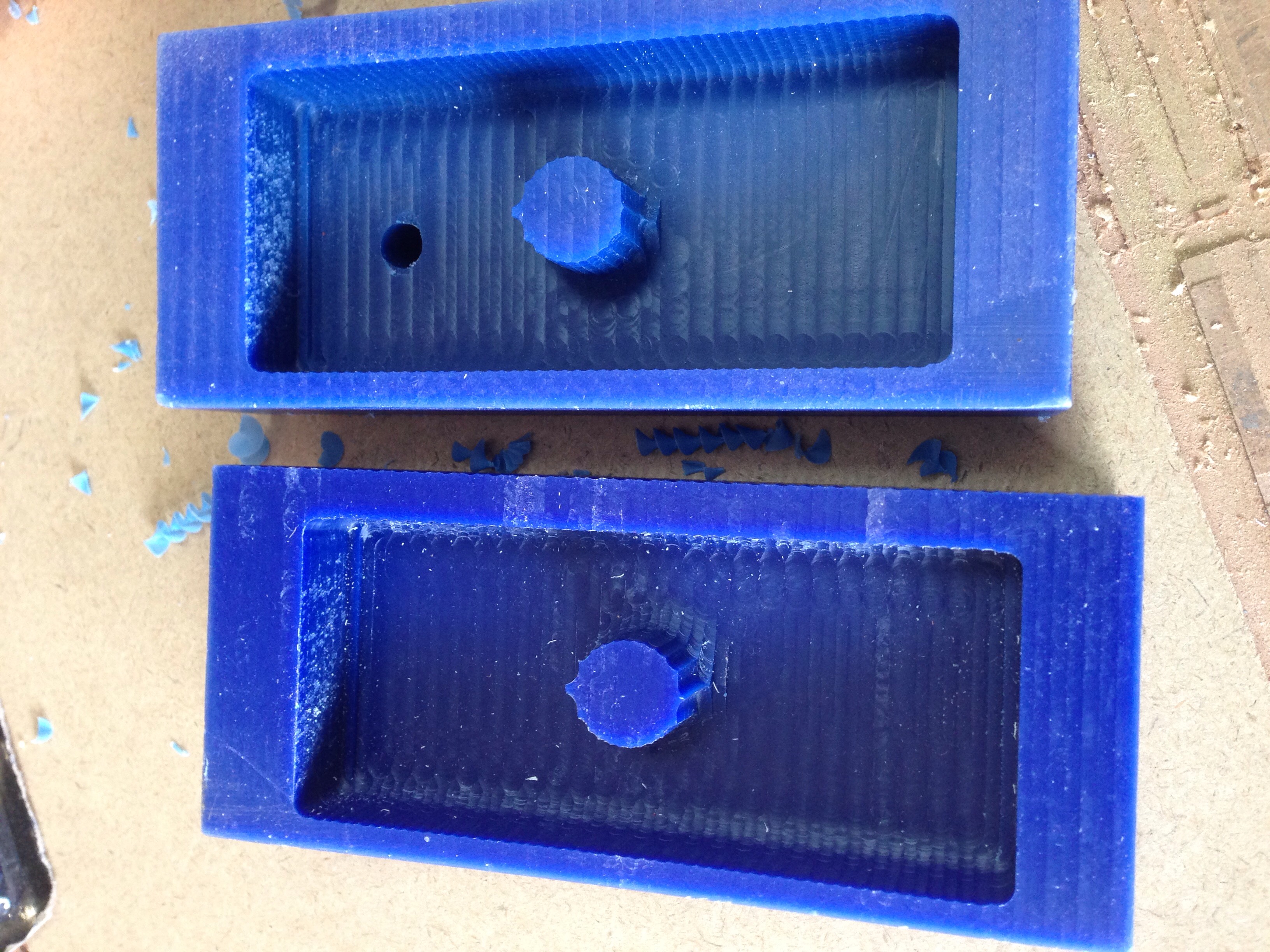 After finishing designing and 3D roughing i try combine two part,i rough by using glue in order to make full molding. And also i need to make a hole in my part in order to see where the casting material it will pass in easy way.